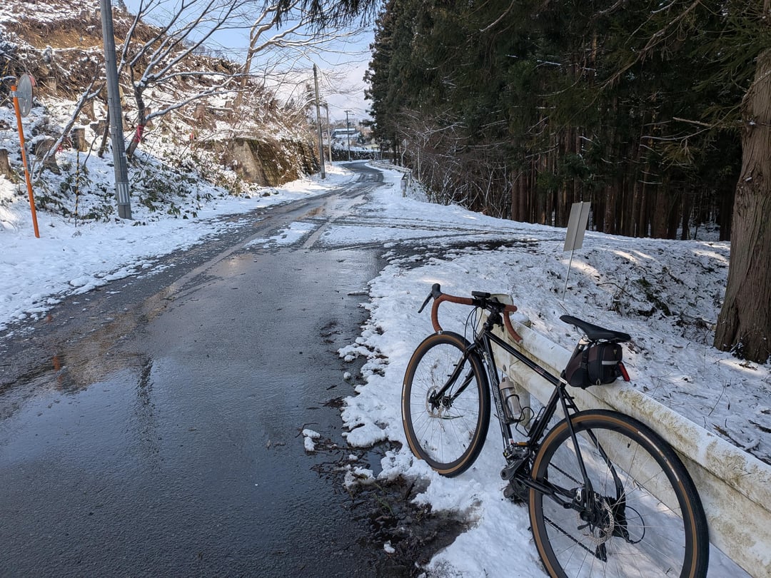 Bike: Araya CXG Tires: Panaracer GravelKing SS 40c Location: Mt. Nansho, Shiwa, Iwate. No snow at home, but I hit the white stuff once I reached the mountain entrance. by budousupu Bicycling Biking Cycling Gravel Cycling Gravelcycling