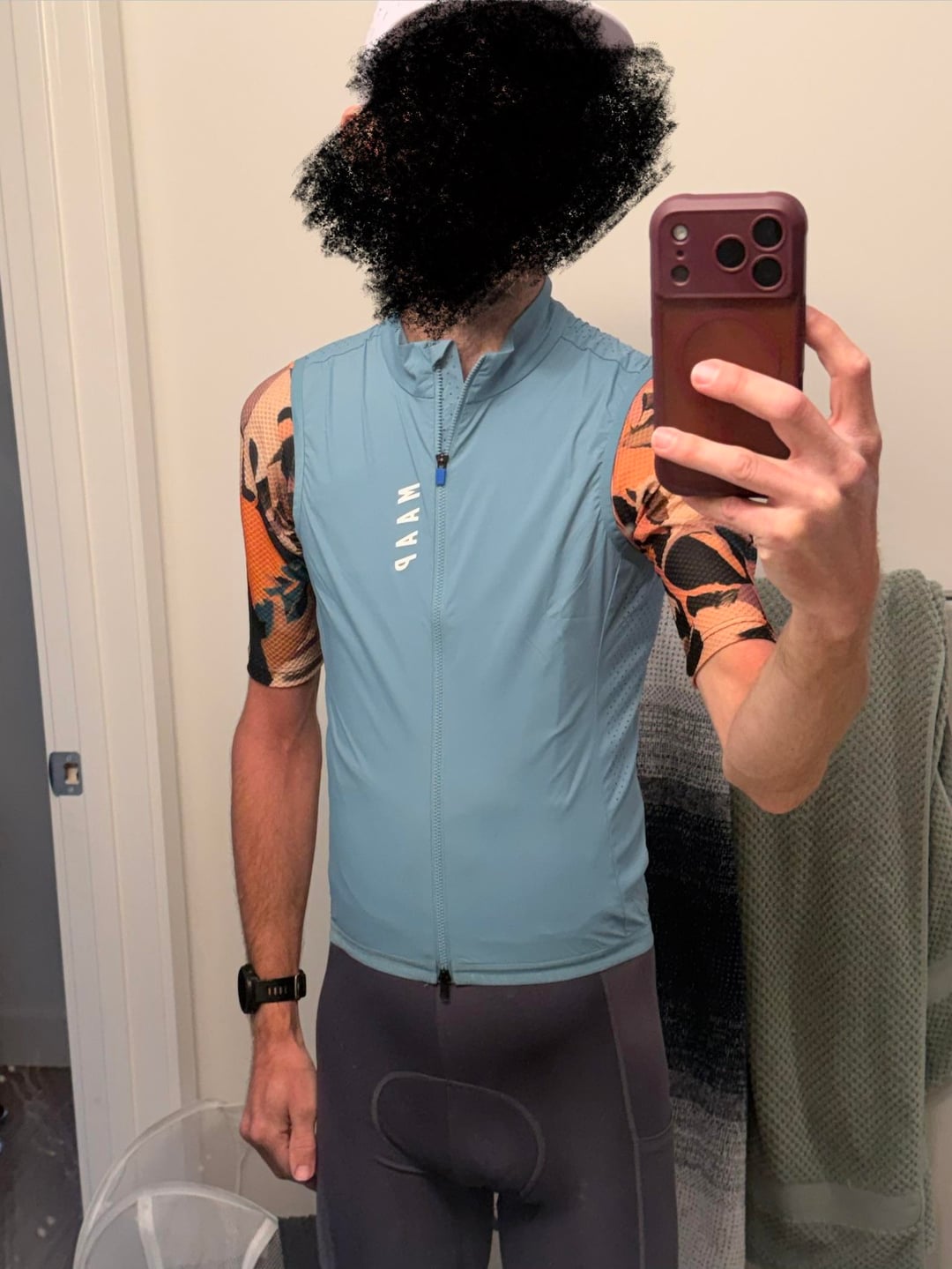 Snagged this draft vest on sale.. Now I’m feeling self conscious as it’s super tight & shorter in length than my other jerseys, therefore scrunching up inside the vest during a ride, pulling it down/adjusting, & making my stomach look big (physical medical disability)