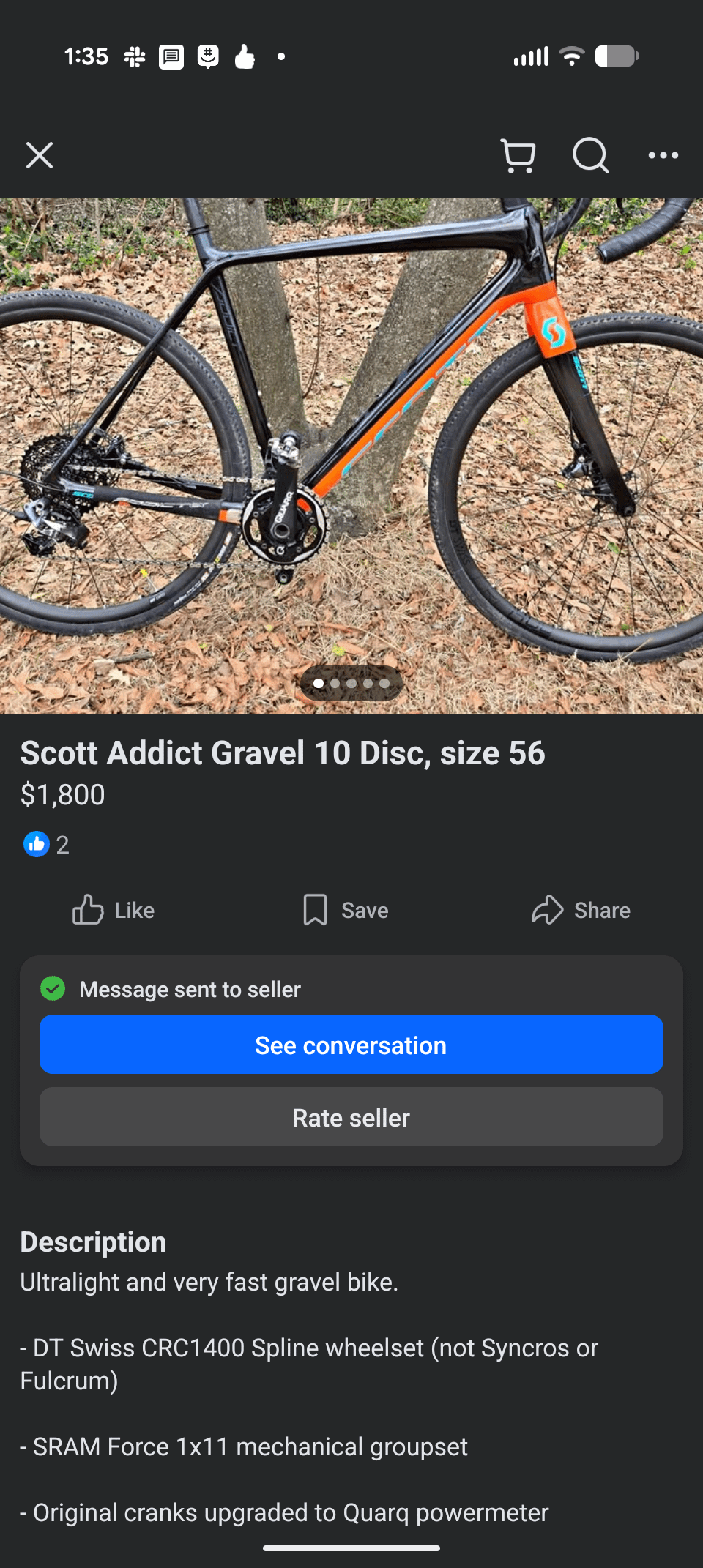 I'm newish and looking to get a race-ready gravel bike and came across this listing. 2018 Scott Addict gravel 10 with dt swiss CRC 1400s for $1800 (I'll offer $1500 and meet halfway-ish).