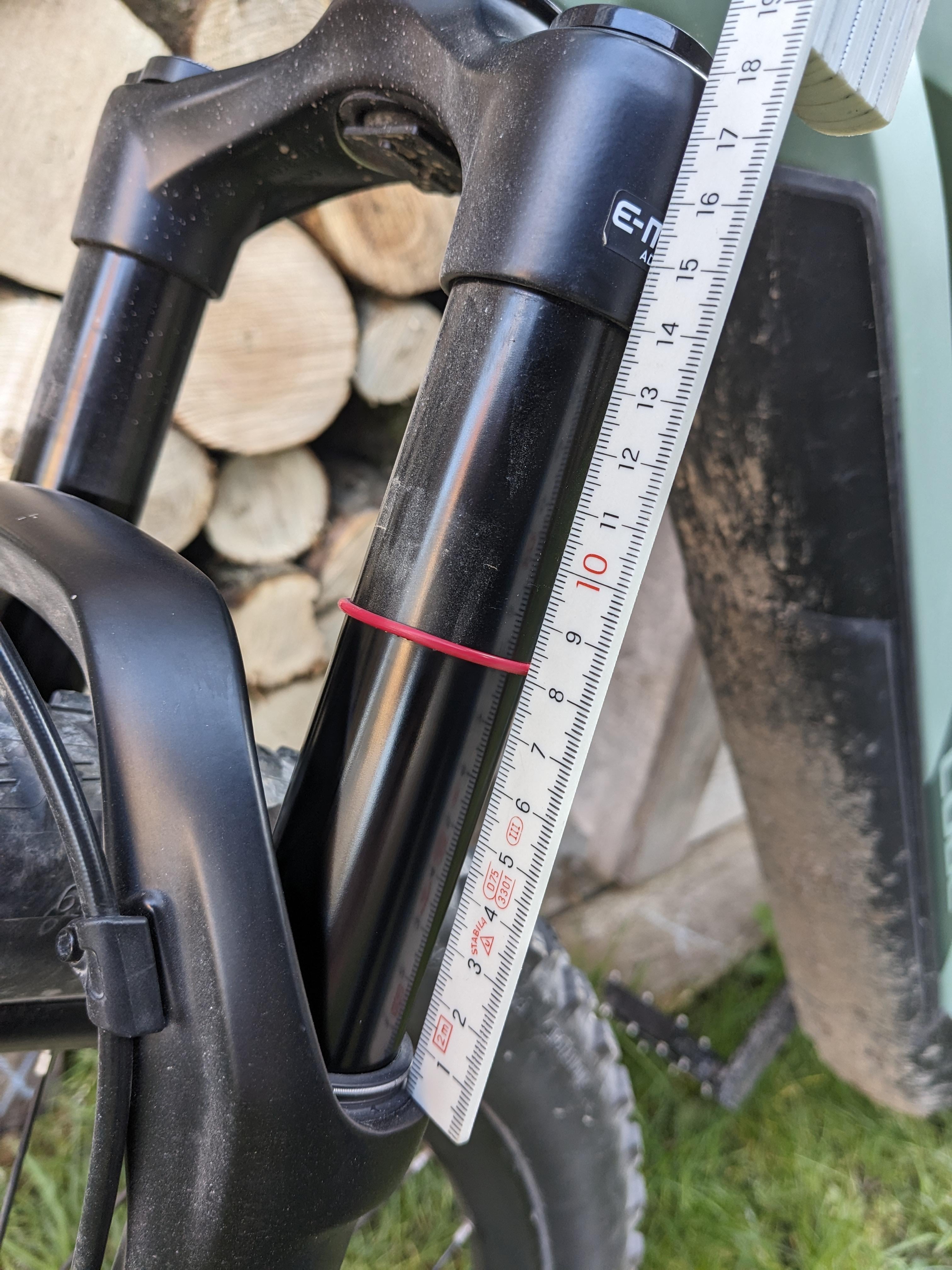 (?). Auch hier hatte ich in Erinnerung, dass die Gabel ursprünglich stärker einfederte. Nie die ganzen 140mm aber vielleicht so 120mm. Allerdings hatte ich bisher nie stark darauf geachtet.