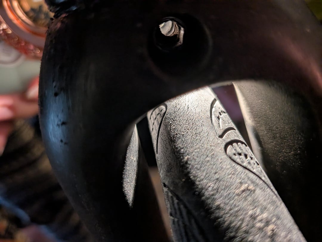 Guck mal, ob du die “Mutter” da vorsichtig rausbekommst. WD40 oder Ballistol zwecks Reinigung sollten auch bei Carbon glaube ich nicht schaden.