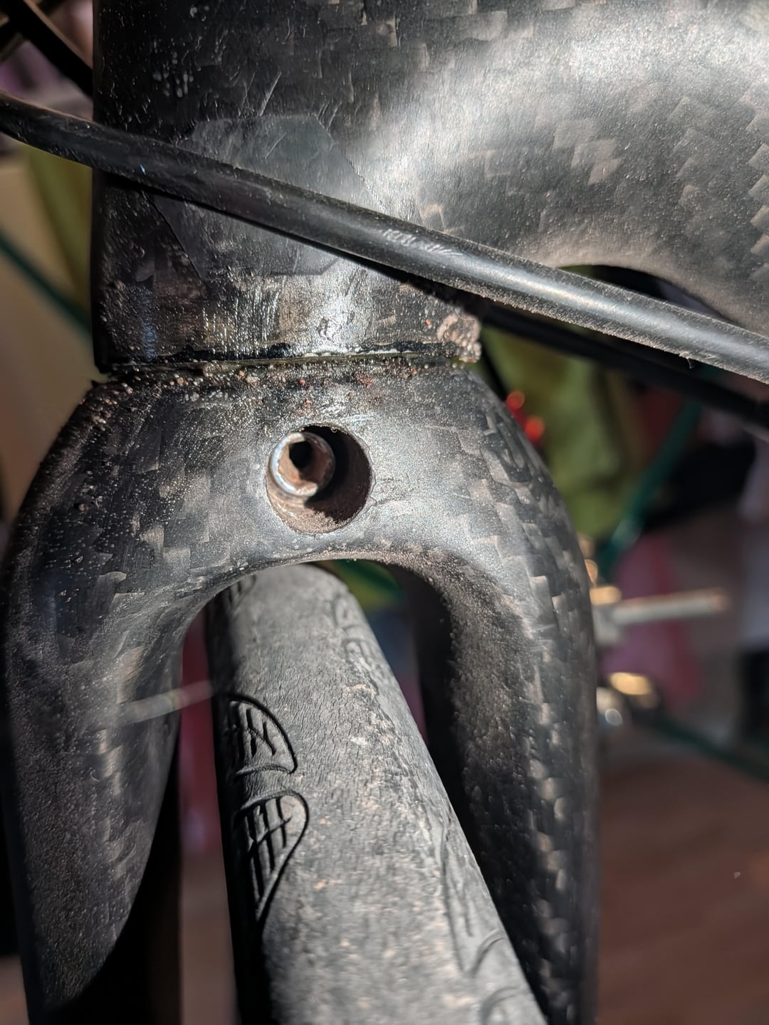 Ich kann mir nicht recht vorstellen, dass da ein Gewinde im Carbon eingelassen ist/war.