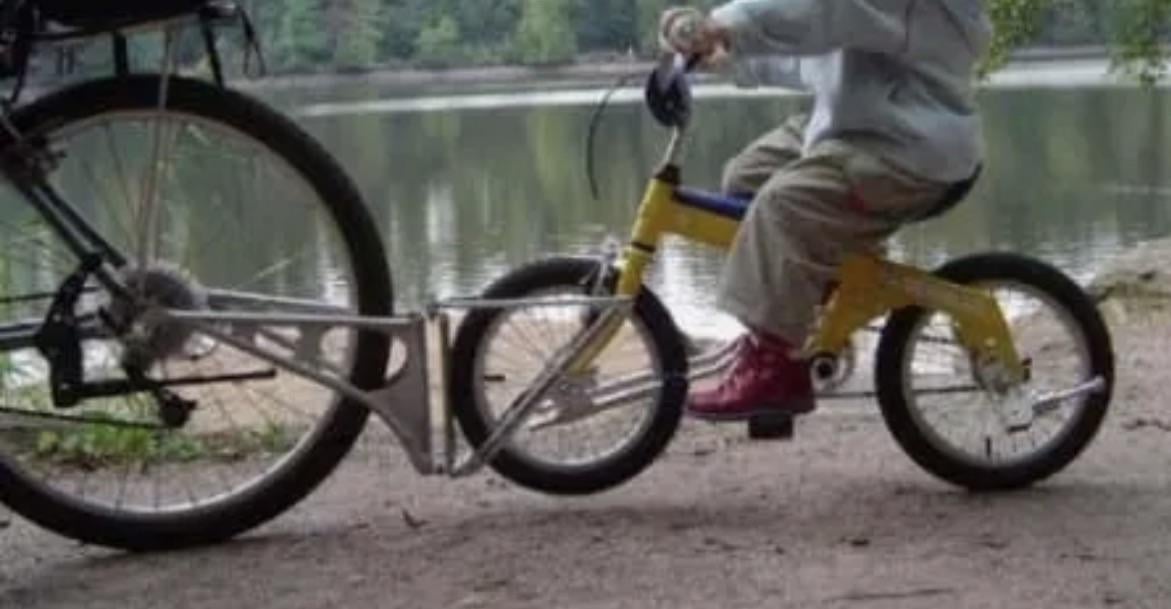 Habe mal ein eBike gesehen an dem ein Fahrrad in so einer Tandemhalterung eingehängt war ohne kleinen Fahrer drauf.