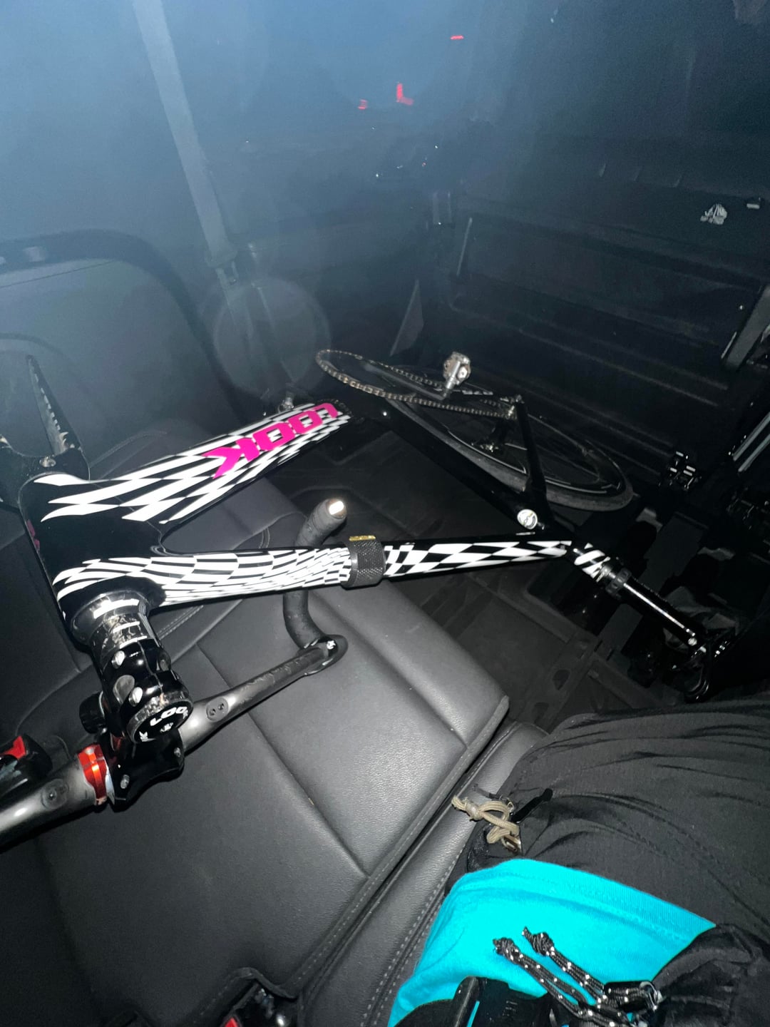 A mid ride detour for a photoshoot resulted in my first damaged frame. Heading back to the group I was pulling in around a SUV in a driveway to get on the sidewalk. Trusted too much on them being a capable individual and had to swerve to avoid them pulling out of the drive.