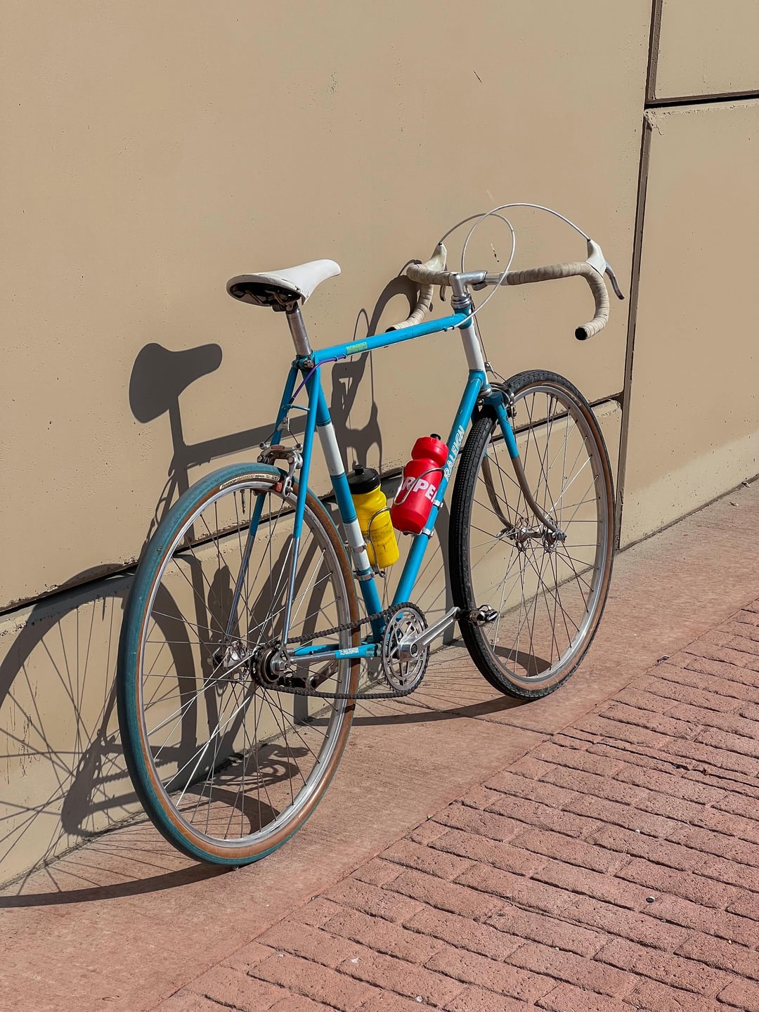 I got this in more OEM form for $40, maybe 9 years ago, but a lot has changed since. Single-speed, clearly. Fitted with 700c wheels to squeeze in some 38mm tires. Record hubs. Record bottom bracket to narrow the q-factor and clean up the chainline. Chorus levers. Record seatpost. The Stronglight 93 cranks are what drew me to the bike in the first place, but it didn’t take many rides to fall in love with the rest. I have embraced the mythology of Reynolds 531. I’m a Raleigh guy now.