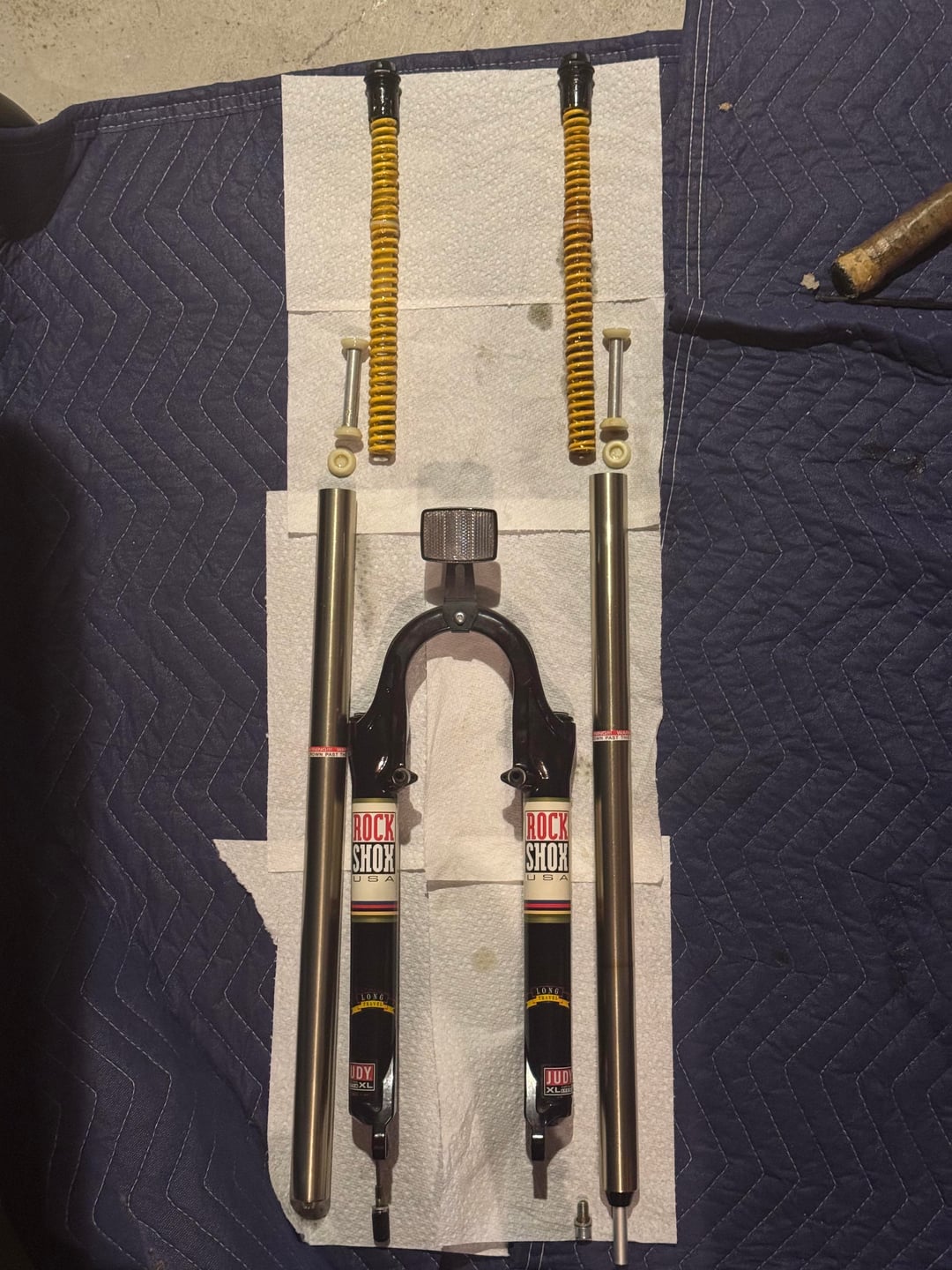Opened this fork up and was expecting elastomers, but there were only coils/springs… maybe a good thing? Only thing that’s lost was the blob of oil that leaked from the top *lol*. Anyone else into vintage mtb? by No-Local-9288 Bicycling Biking Cycling Mountain Biking
