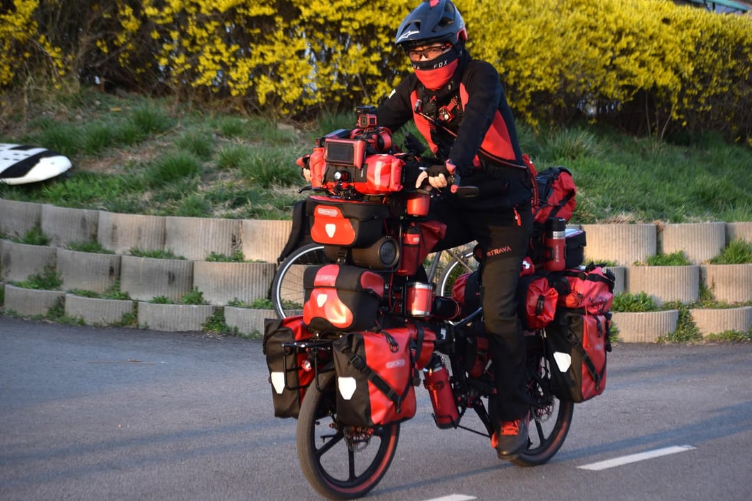 This guy needs an Ortleib sponsorship. Or therapy. Or both?? by michael_bgood Bicycle Bicycle Touring Bicycling Biking Cycling Touring