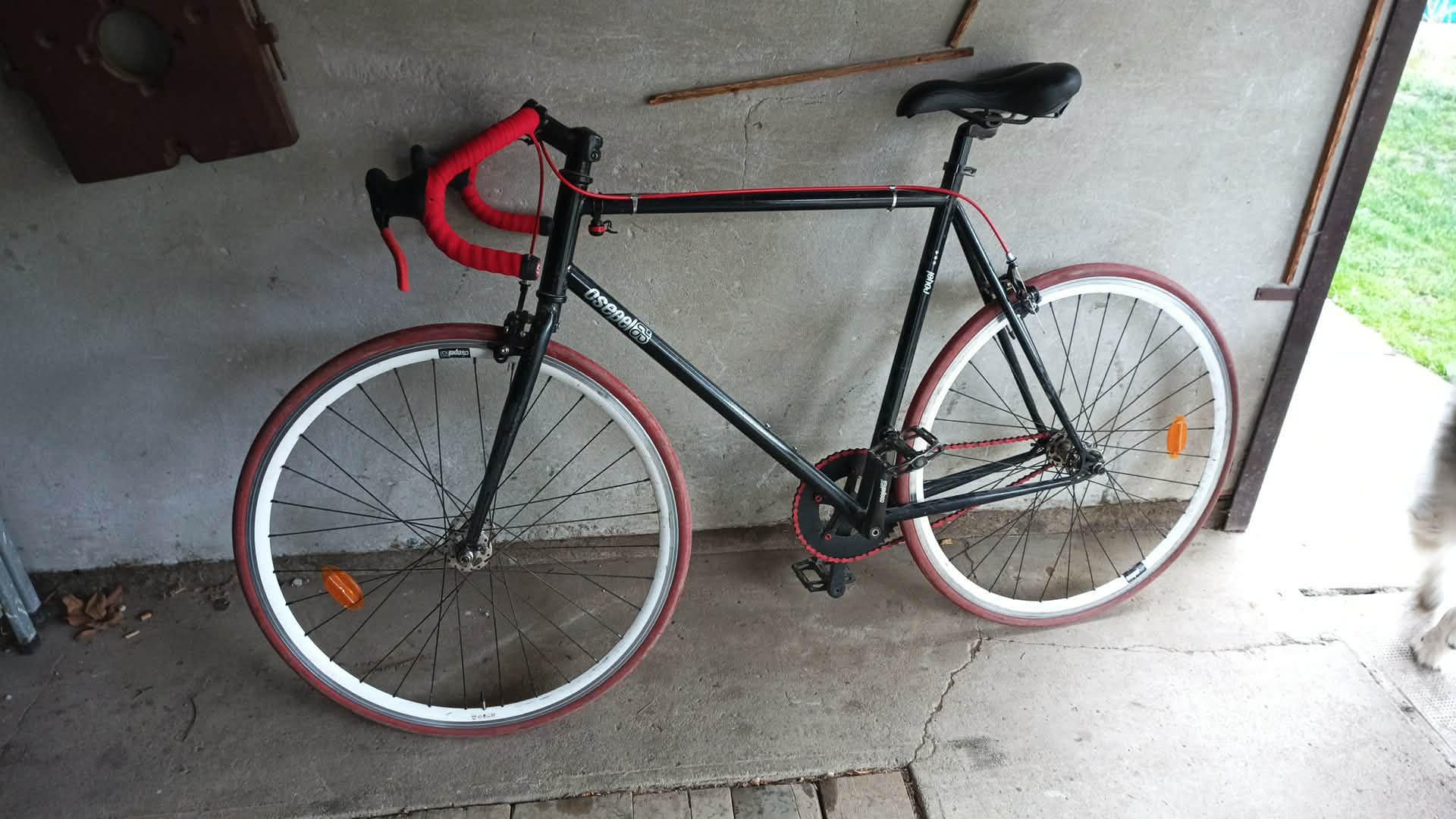 I’ve ridden fixed on the road since ‘98 and ALWAYS ran front and rear brakes. Chains can break or derail. While the U.S. does not have any meaningful bicycle brake laws, the U.K. does – and since 1936 or so the have required an independent brake for both wheels AND a fixed-gear with a lock ring is considered a brake, but legally you still need the front one. Finally, the old guys who rode fixed-gear racing bikes on the road in the years between the wars rode with track gloves with extra-thick palms, and mastered the trick of running a forearm under the bars to lever a gloved palm against the tire, essentially making an 1880s spoon brake. It also put braking action on the front wheel, where it counts.