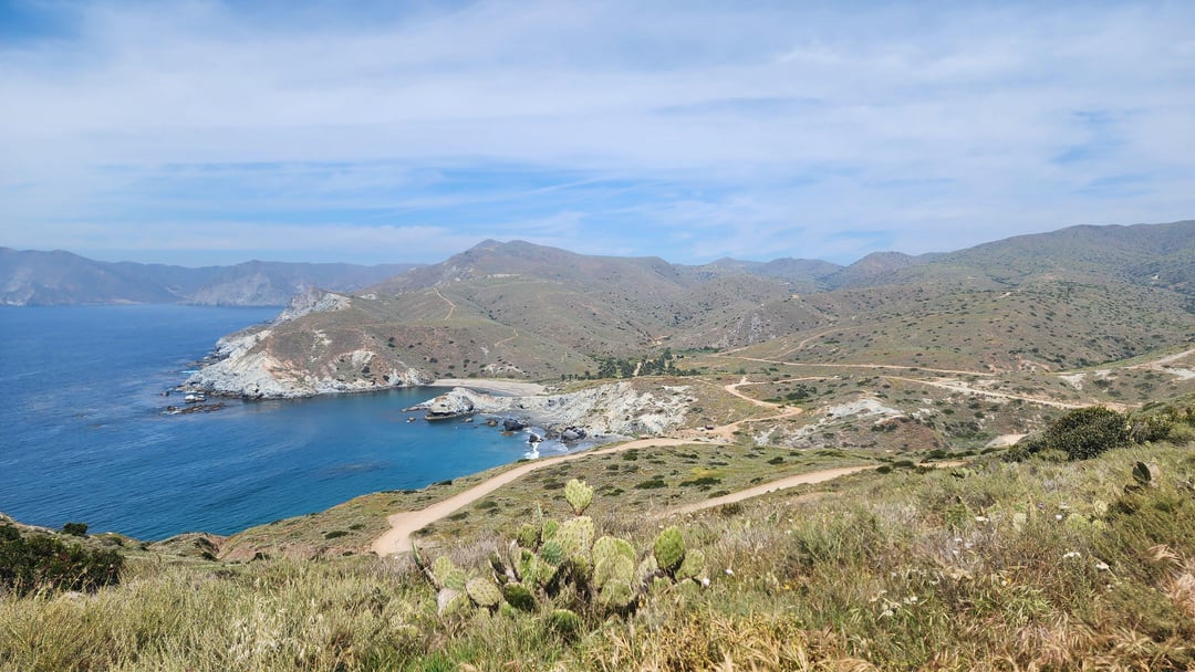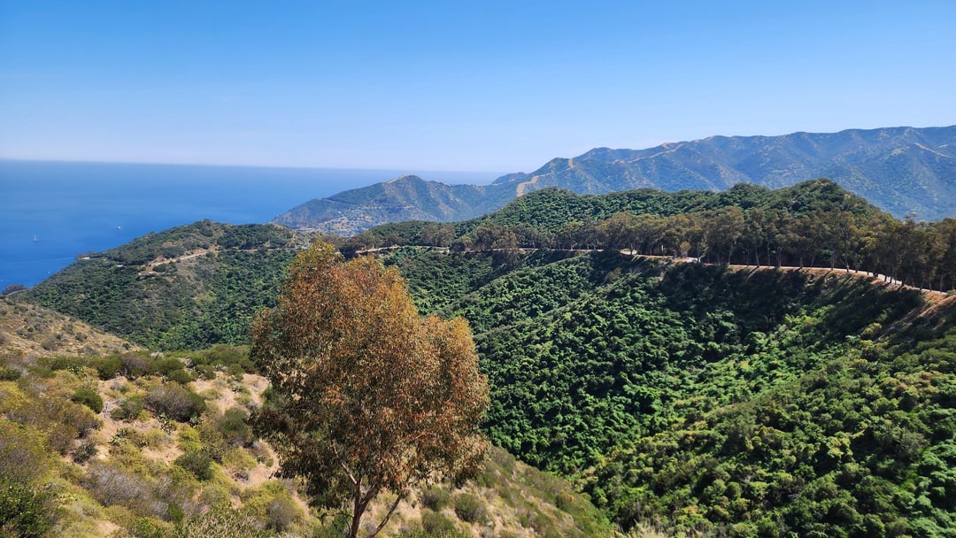 Just spectacular scenery and smooth graded dirt roads. The Catalina Island Conservancy, which manages the open space, does a great job managing the many camps around the island and makes it easy to get a bike permit to ride across the island.