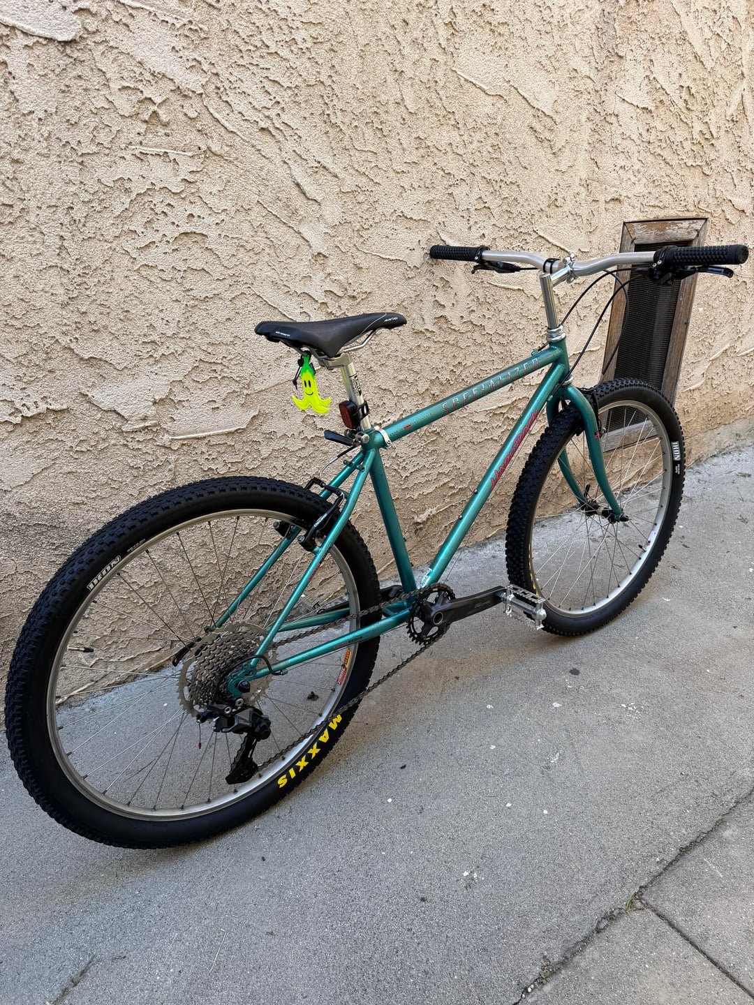 I believe this is a 1994 specialized Hardrock . Shimano deore crank , group set and v brakes , Velo orange quill stem with ritchey classic riser bars ! Now I have the itch to build a couple more . by uras69 Adventure biking Adventure on a bike Bicycling Biking Cycling xbiking