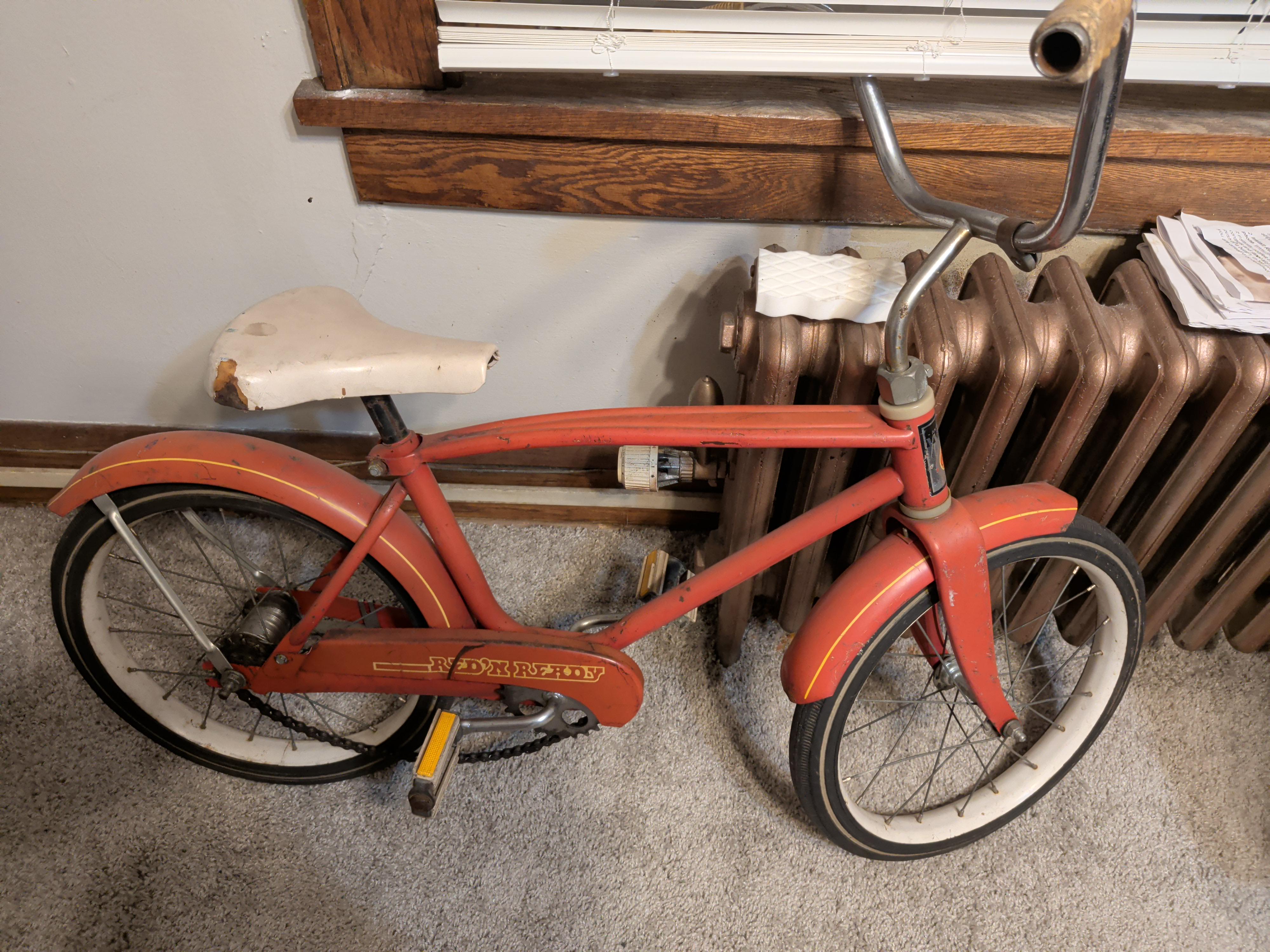 i found this bicycle outside being thrown out. I have a feeling it's 1950s or 60s. i have searched this one up a bunch. But I never found any significant details. let alone info on the exact same bicycle. I was thinking of cleaning it up and restoring it. But I feel like that may decrease the value. Anyone with any information I would gratefully appreciate.