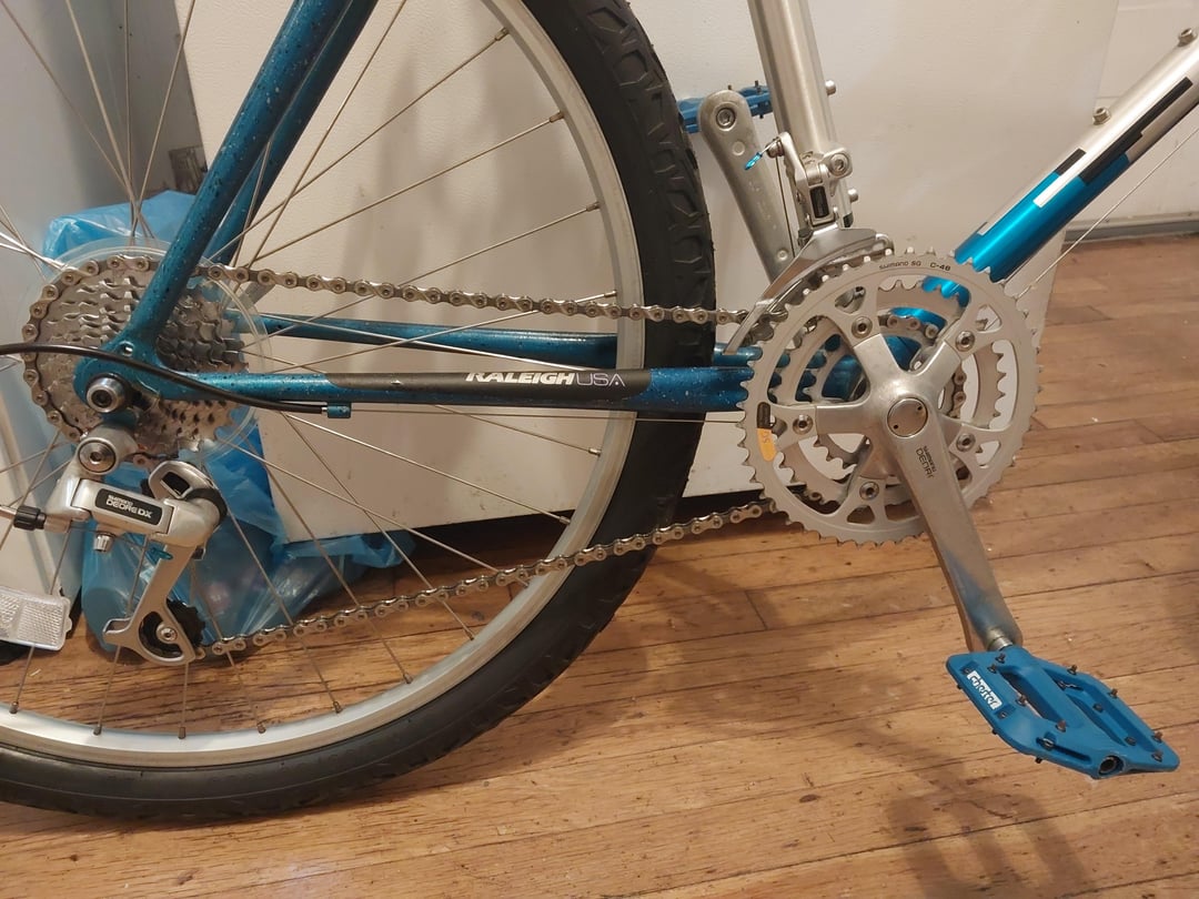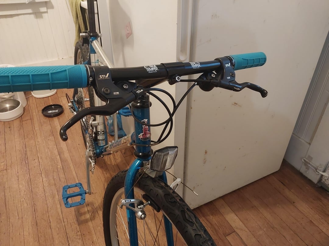 Not the best pics, but wanted to share this fairly pristine old MTB from right around 1990. I'm a big fan of adding nice little aesthetic touches like matching grips, pedals, cable ends and the like. Aluminum main tubes bonded to steel lugs, steel fork, and rear triangle, with nice double-wall Sun rims made in the US, and Deore DX groupset. I have too many bikes so it'll be sold off, but I love how this thing looks