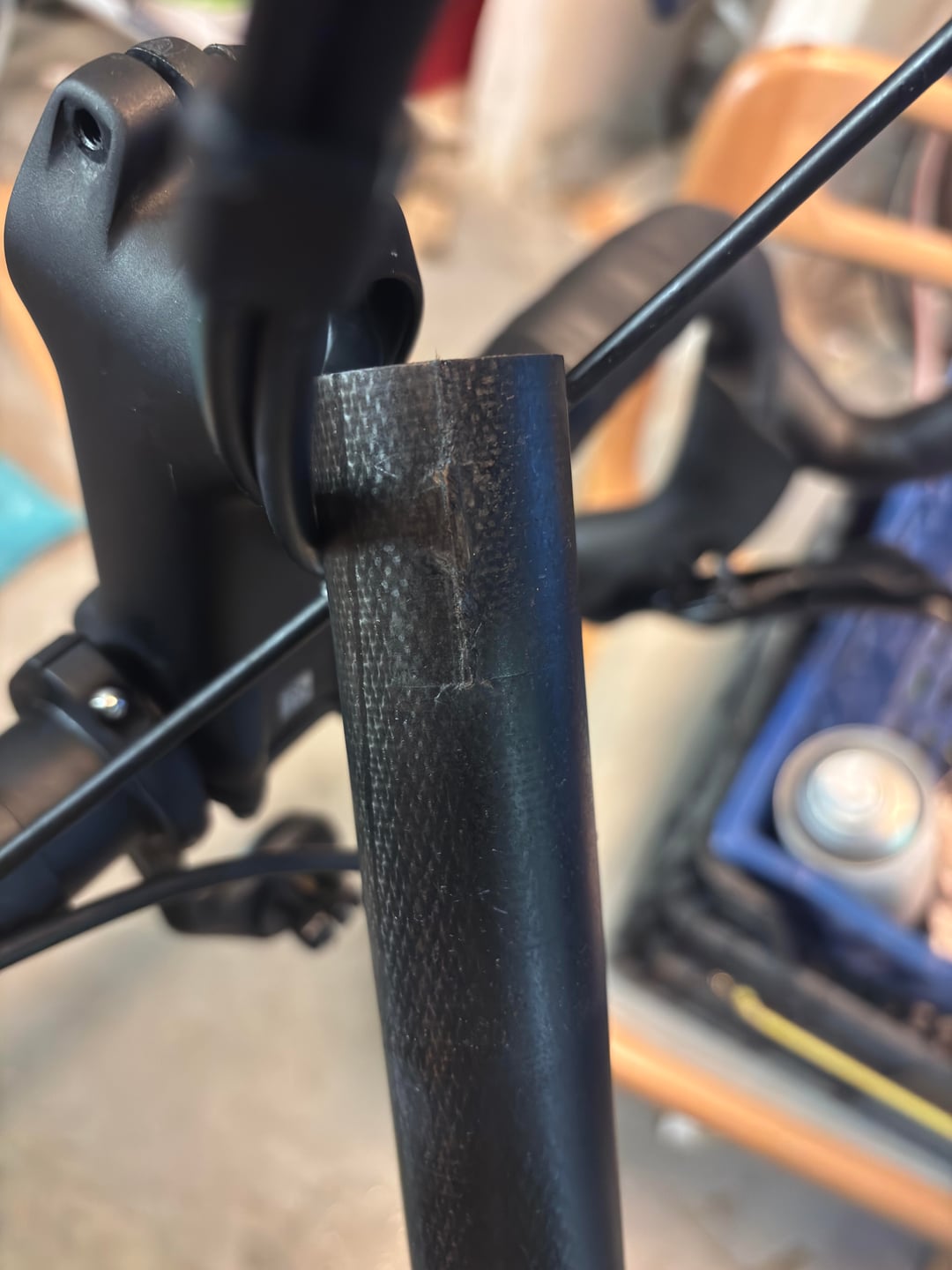 But back to yesterday: first thing I decided to do was to open a claim on their website. Since the bike was purchased in 2022 and I still have 2 years left of conventional warranty (6 years) I’m eligible to apply for it. My concern is that I’m not the only one and that they probably had several claims opened. Now I’m really worried they will blame me of overtorquing and whatever but even if that happens the other problem here is how to replace this fork. If their reply is negative I’m thinking of cutting right under the crack. In that case the steerer would maybe be too short (with no spacers installed) and I’ve done some math and If I were to cut it it would end by the upper screw. Maybe you have a better solution but really I’ve rode this bike for miles and It would be a shame to just throw it away just because there’s no replacement or solution.