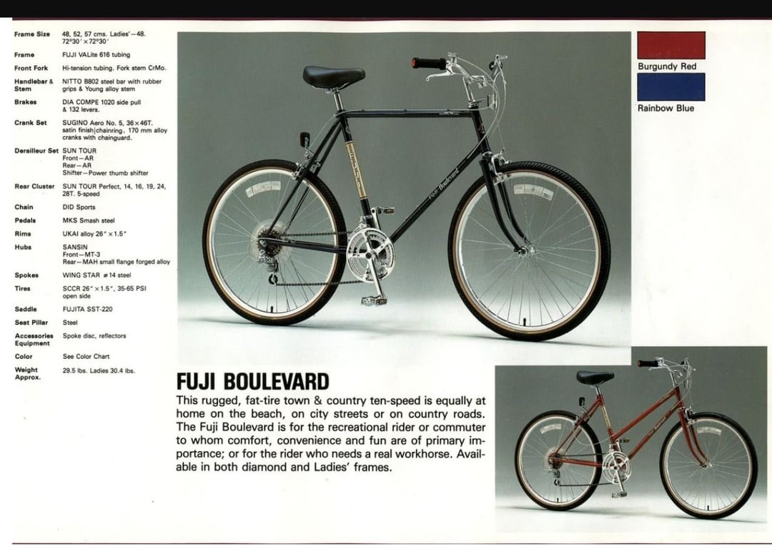 Fuji also had a Boulevard XC at the time which uses cantilever, these oddly use caliper but looks to be plenty of room. I found a pic of the women's one with fenders for reference (managed to find the same fenders on Rivendell). Excited to get this back rolling. I'm doing Panaracer tanwall Pasela Protite tires. I read a ton of good reviews on them. Stock tires are 26 x 1.5" so figured 1.75" should be good. Room for fenders. Gonna throw a Brooks saddle on. If anyone has recommendations for grips that would look appropriate. I'm probably going to use some cork ones for now.