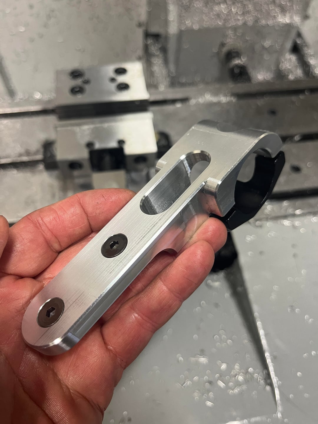 I wasn’t satisfied with the available options—they tended to rub on the frame and bounce around. Since I’m a machinist, I decided to design and build a custom mount that bolts directly to the factory handlebars. Machined from 6061 aluminum and powder coated to match the bars.