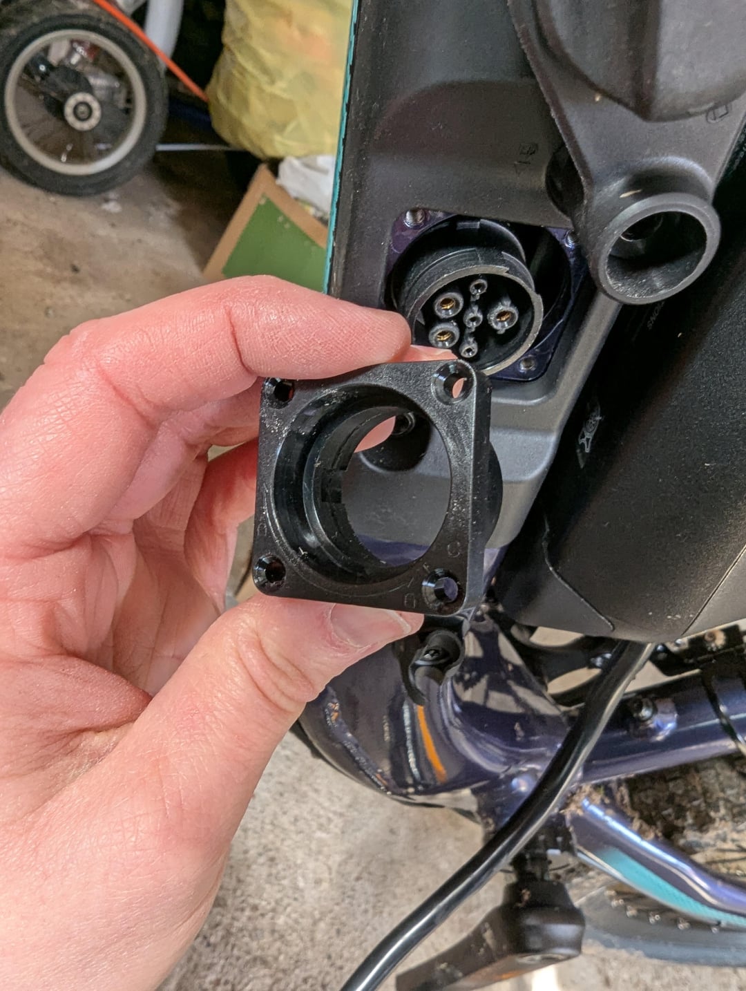 Hallo! haben unserem Sohn ein E-Bike von Liv gekauft, gestern ausgepackt, fertig zusammen gebaut (Pedale und Vorderrad), aufgeladen – und bei der Konstruktion von Akku und Stecker bereits gestaunt, dass der Stecker da sehr wenig rein rutscht, aber Strom fließt – also ok. Erste ausgiebige Testfahrt, alles gut, über Nacht geladen – und jetzt geht der Stecker nicht mehr rein, weil das Teil im Fahrradkorpus nach hinten rutscht, also nirgends festgeschraubt ist. Habe den kleinen Deckel abgenommen und sehe eine Art Gewinde und Rillen wo eigentlich etwas rein rasten soll. auch auf dem Steckerteil innen. aber es passt nicht zusammen. Auch dieses komische Plastikteil am männlichen Stecker außen ist störend und man kann den Stecker gar nicht richtig hinein stecken, kann es sein, dass der Stecker innen eigentlich von vorne in die Platte montiert gehört hätte, anstatt Stecker innen frei schwimmend und Deckel oben drauf? oder stellen wir uns blöd an?
