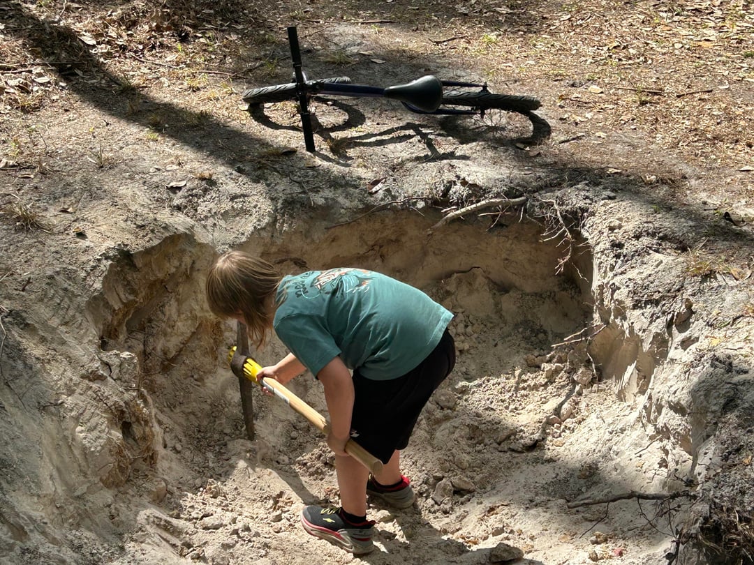 A couple weeks ago I took the advice of people on here and got myself a fit series 22. I love it. I instantly got to work digging trails in my backyard. I even put my 6 year old to work. Yesterday I got a load of dirt delivered for a roll in. I have a hip jump thing I’m experimenting with, a roller followed by a little double and a table top at the end.