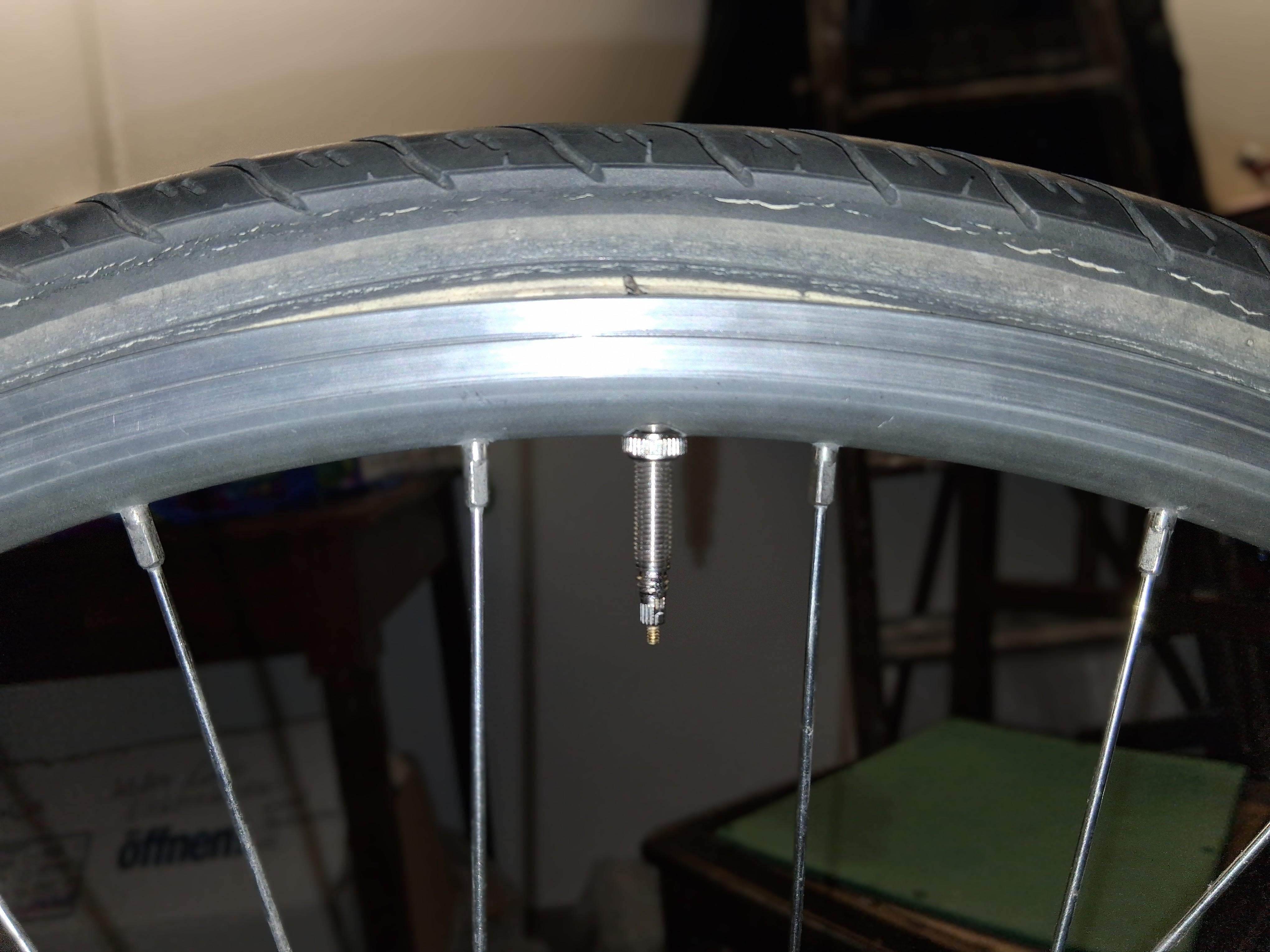 Luft rauslassen, Ventil in den Mantel drücken, Reifen dabei in die richtige Position drücken, aufpumpen. Wenn du so fährst, machst du dir was kaputt.