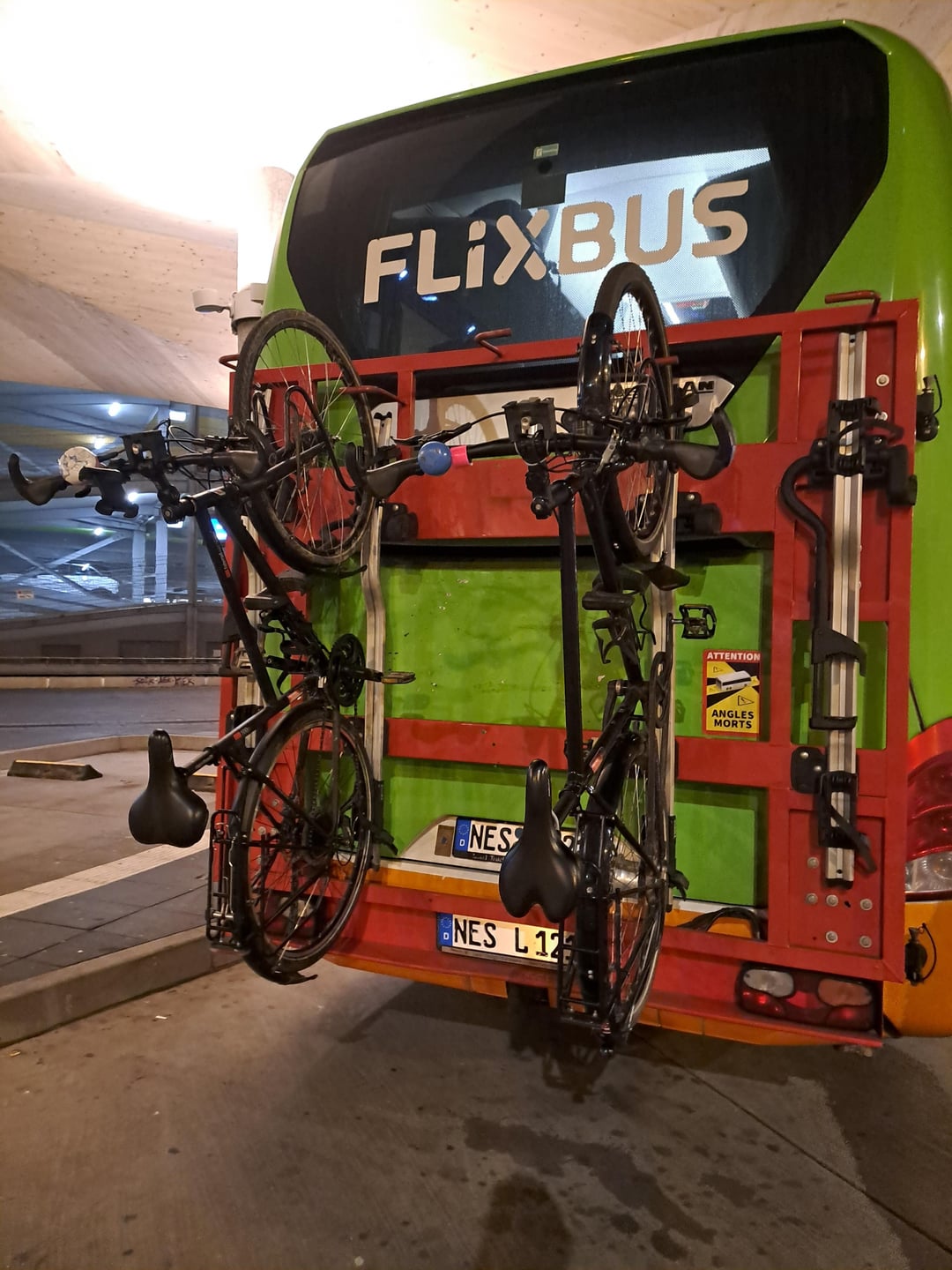 Anreise: Die Anreise nach Lyon haben wir von Gießen aus mit dem Flixbus angetreten. 2 Personen, 2 Fahrräder und einmal 30kg Extragepäck gebucht. Alle Taschen, die wir nicht im Bus gebraucht haben, haben wir mit den Spanngurten zu zwei Paketen zusammengeschnürt. In Gießen ist es erstmal nicht gelungen die Fahrräder an der Heckhalterung zu montieren. Mit schlecht gelauntem Busfahrer, abgebauten Komponenten, den Fahrrädern im Gepäckraum und 15 Minuten Verspätung ging es nach Frankfurt, wo ein zweiter Versuch unternommen wurde, der dann auch funktioniert hat. Ansonsten lief die 13 Stunden Busfahrt (21 Uhr bis 10 Uhr) ohne weitere Probleme ab.