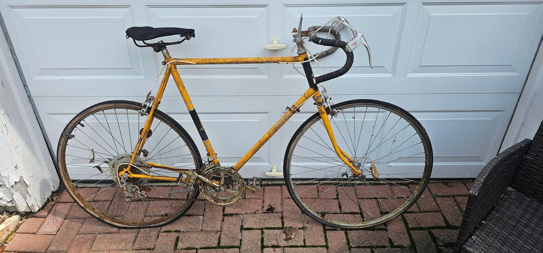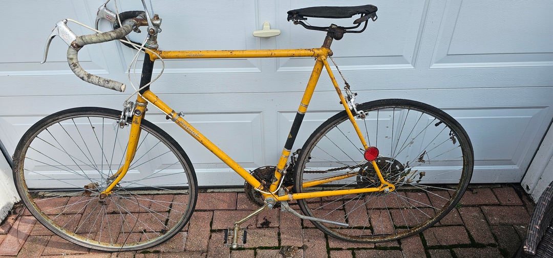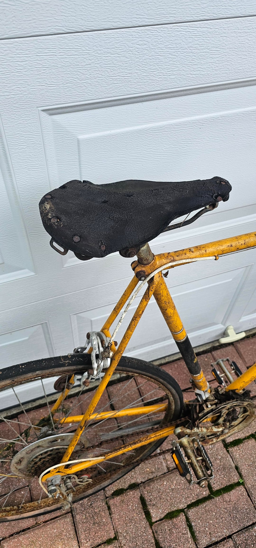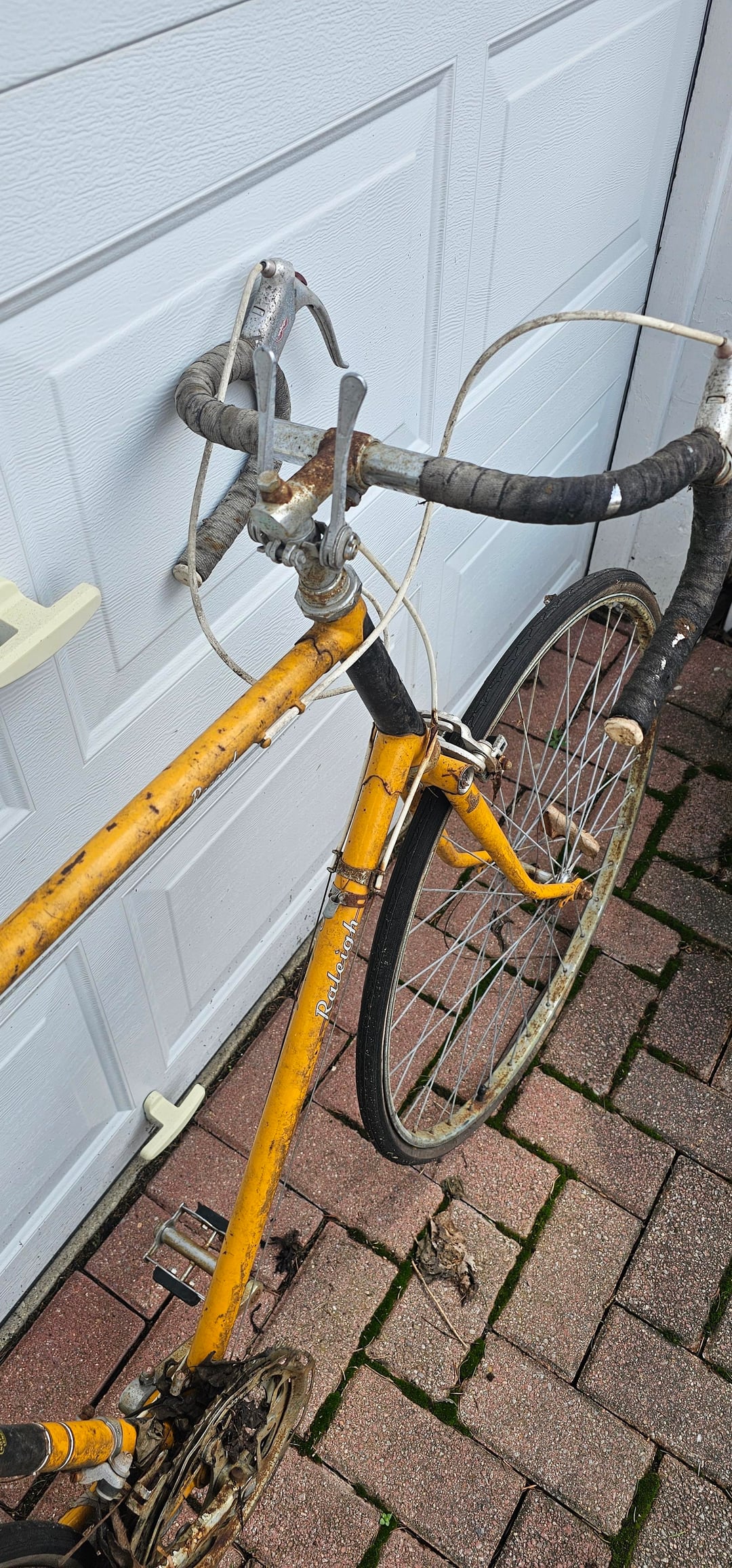 My neighbor pulled this Raleigh out of a pile of leaves, tires, and other junk and gave it to me for free. I didnt see any markings to help identify its age and model but theres a lot to clean up that may reveal something. I am wondering if anyone is able to identify and also curious if its even worth it for a complete restoration as i am new to working on bikes in general and have not considered this kind of project till now. Help is appreciated!