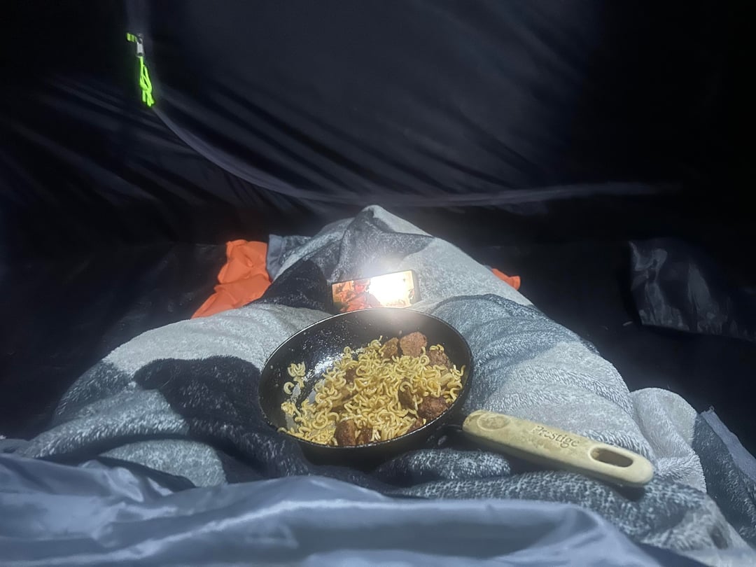 Went surprisingly well, coming back down was a blast. Tyres handled the rocks really well considering the extra weight. Inflatable mat had been popped by my cat at home so that sucked and needed a lid for my pan as the heat kept getting blown away. Still need to get a head torch too as mouth bike light sucks.