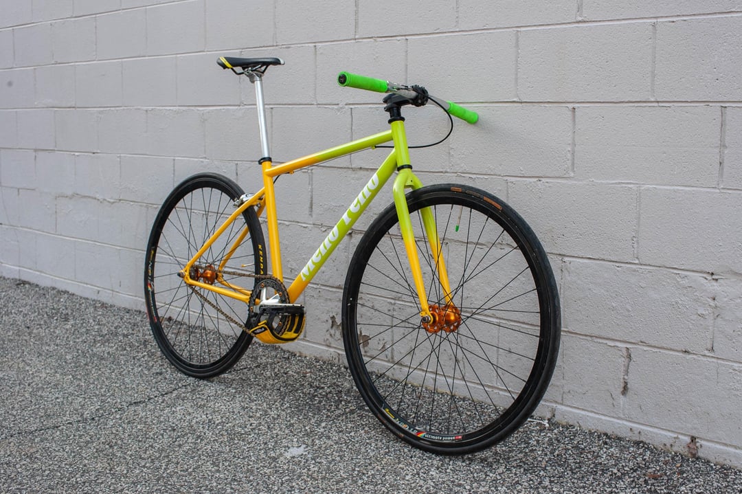 My only comment is that, if you only have 1 brake, it should be in front. You get a LOT more stopping power. Otherwise, this bike looks like a lot of fun, and the color is pretty cool.