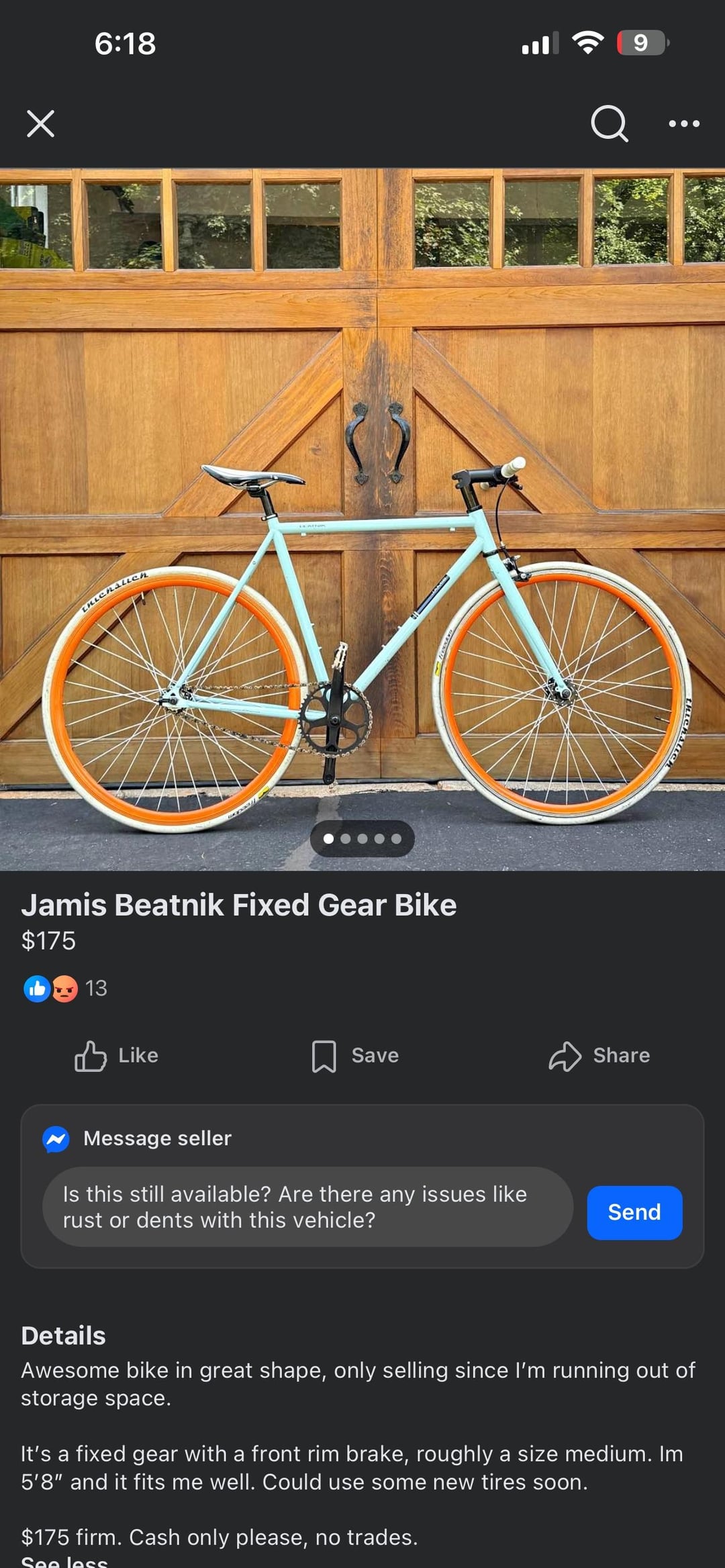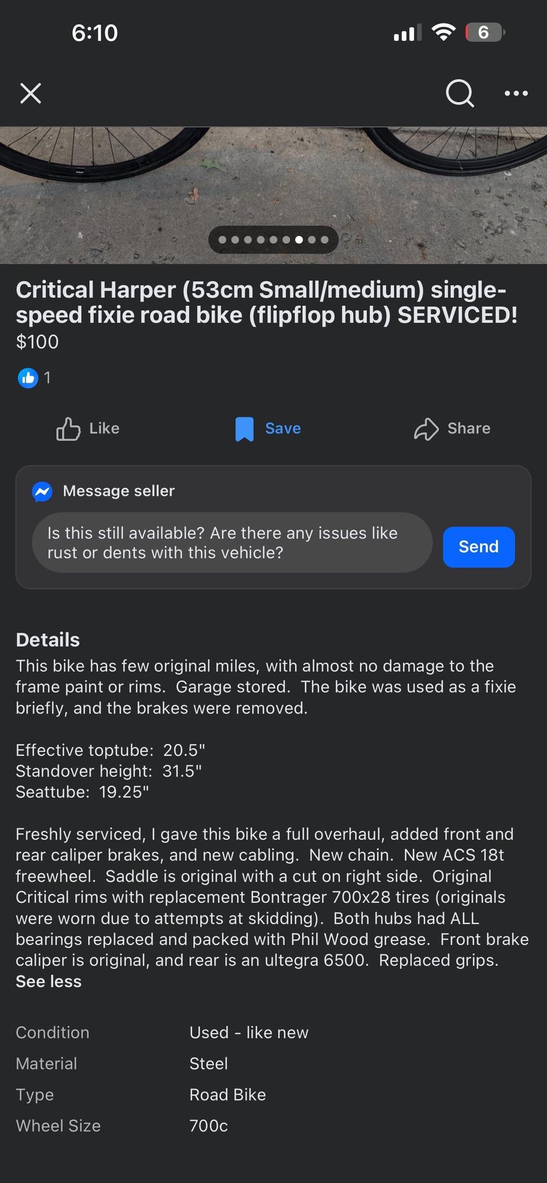 I'm new to this community. I wanted to get into this hobby by buying the tsunami snm100 complete bike. I eventually want to upgrade my bike to carbon wheels. I was curious and took a look on my local marketplace to see if there was anything similar and I found these three listings. If anyone has any insight on buying advice please let me know. I also live in an area with some hills so how practical would a fixed bike be? Thanks!