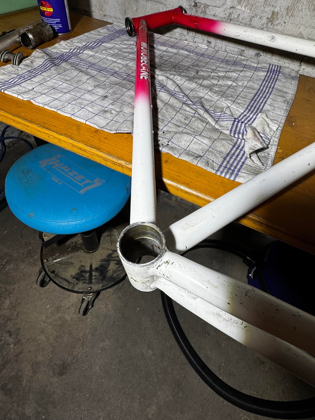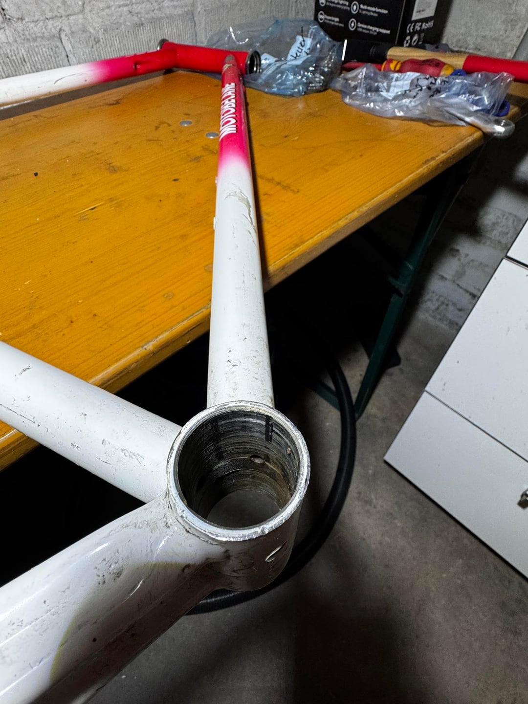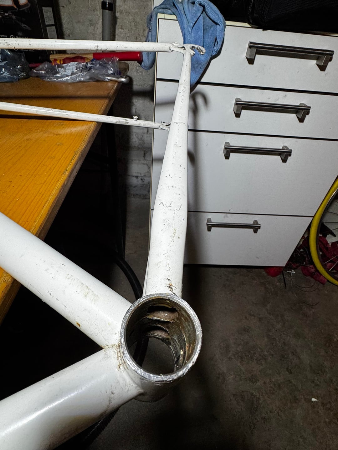 However, during the teardown I ran into a major issue: the bottom bracket was completely destroyed. Removing it took a lot of force and unfortunately caused even more damage in the process. At first we thought this might just be normal given the age of the bike.