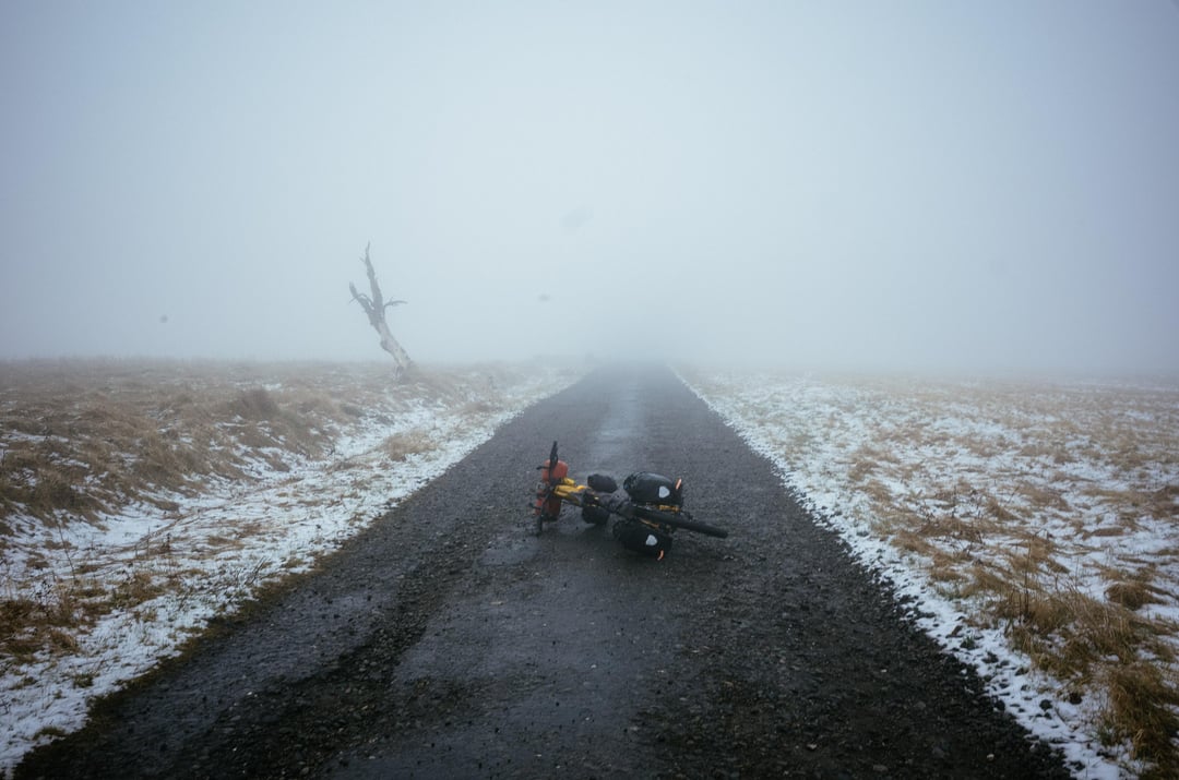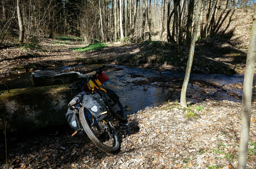 First and last day was just a beautiful spring weather. I knew it should rain on the second day so I packed my tent early. It did snow at the end and temperature fell close to zero during the day and bellow in the night. The route included everything from smooth roads to rocky single tracks, soft gravel, hard gravel, snow and mud, and some jumping over water streams.