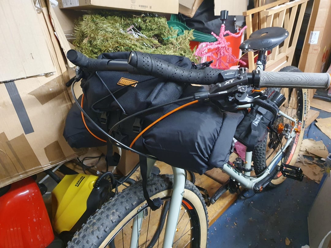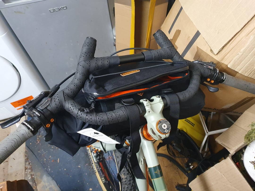 Just photos for others reference – I'm setting up for a world trip and bought this handlebar system hoping it would fit. The cable routing isnt graceful and means i have to slide the bag out sideways instead of dropping it from the front, but otherwise it feels like its going to be solid