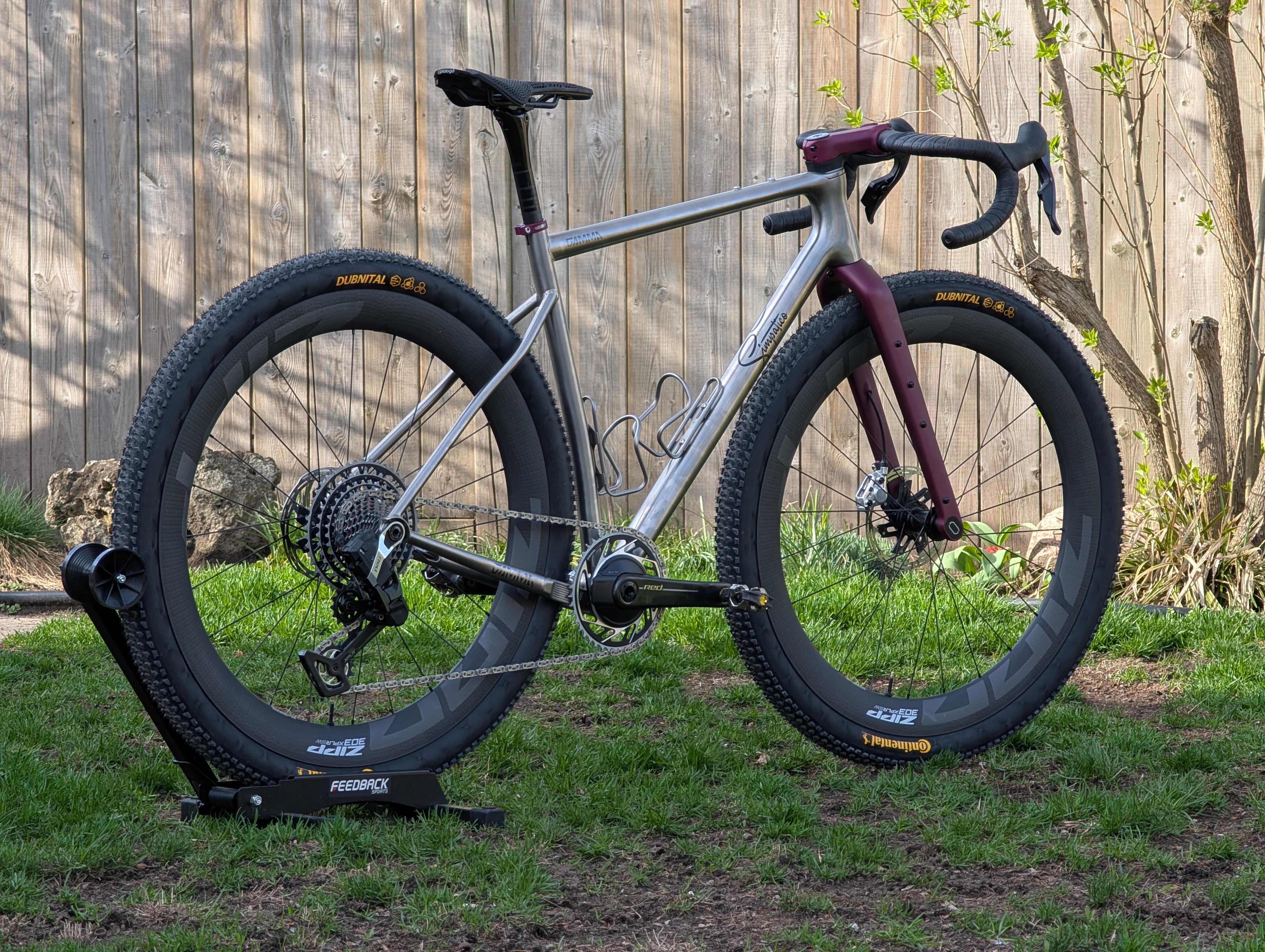 This frame is amazing. Simpatico managed to do some wizardry with the geo. 430mm chainstays with 7mm tire clearance on all sides. Lots of BB drop to really plant you between these larger tires.