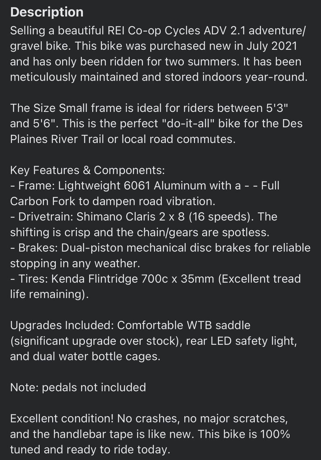 I am looking to purchase my first gravel bike. I found an REI Gravel bike on Facebook Marketplace and wanted to see if this is a good deal or not?