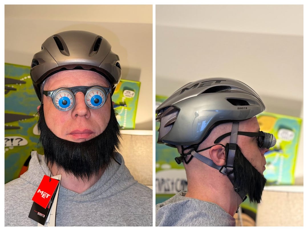 I have four MET helmets on my desk (two Mantas and two Trentas) along with some privacy preservation supplies.