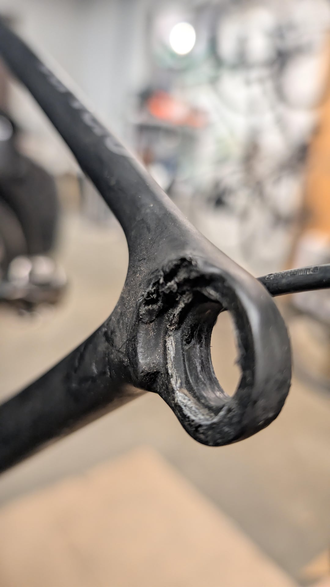 The rear drop out above the hex the hanger fits into is pretty chewed up – are there structural concerns here?