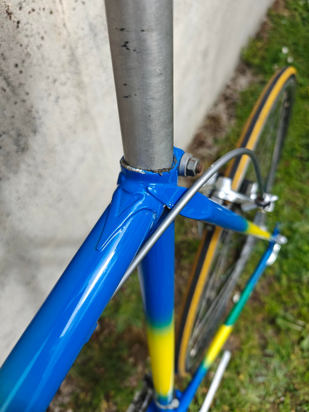 The paint was made by Jean Pierre LeVacon in the 90s, a french frame builder, but he told me that he did not made this frame, just the paint.