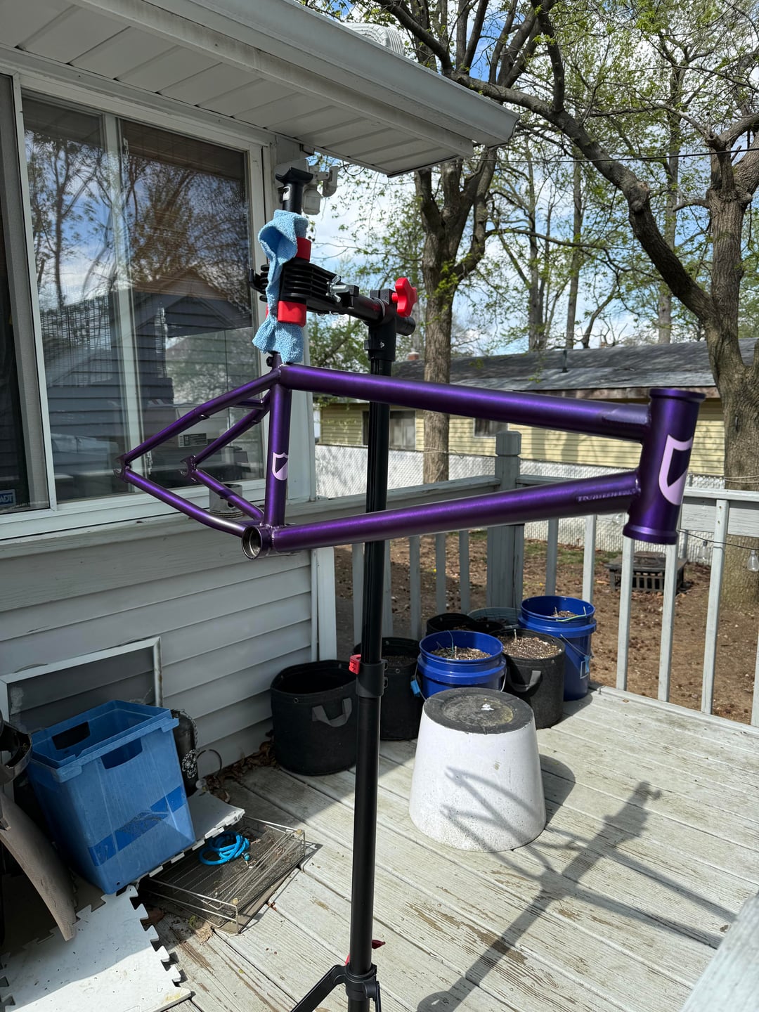 Almost done building this S&M ATF XL Rea signature frame in purple haze colorway. Still needs brake mounts, brakes and a few minor things. I have a chrome S&M Enduro stem I’m gonna put on when the S&M Hoder bars in trans purple get delivered. Stoked on how it’s coming along.