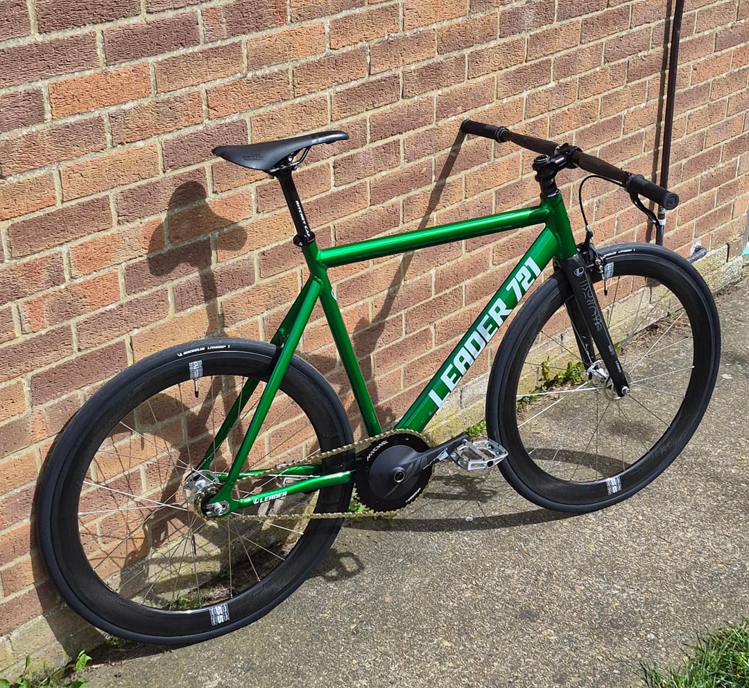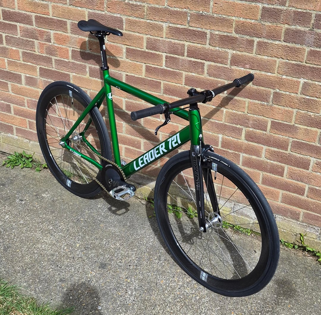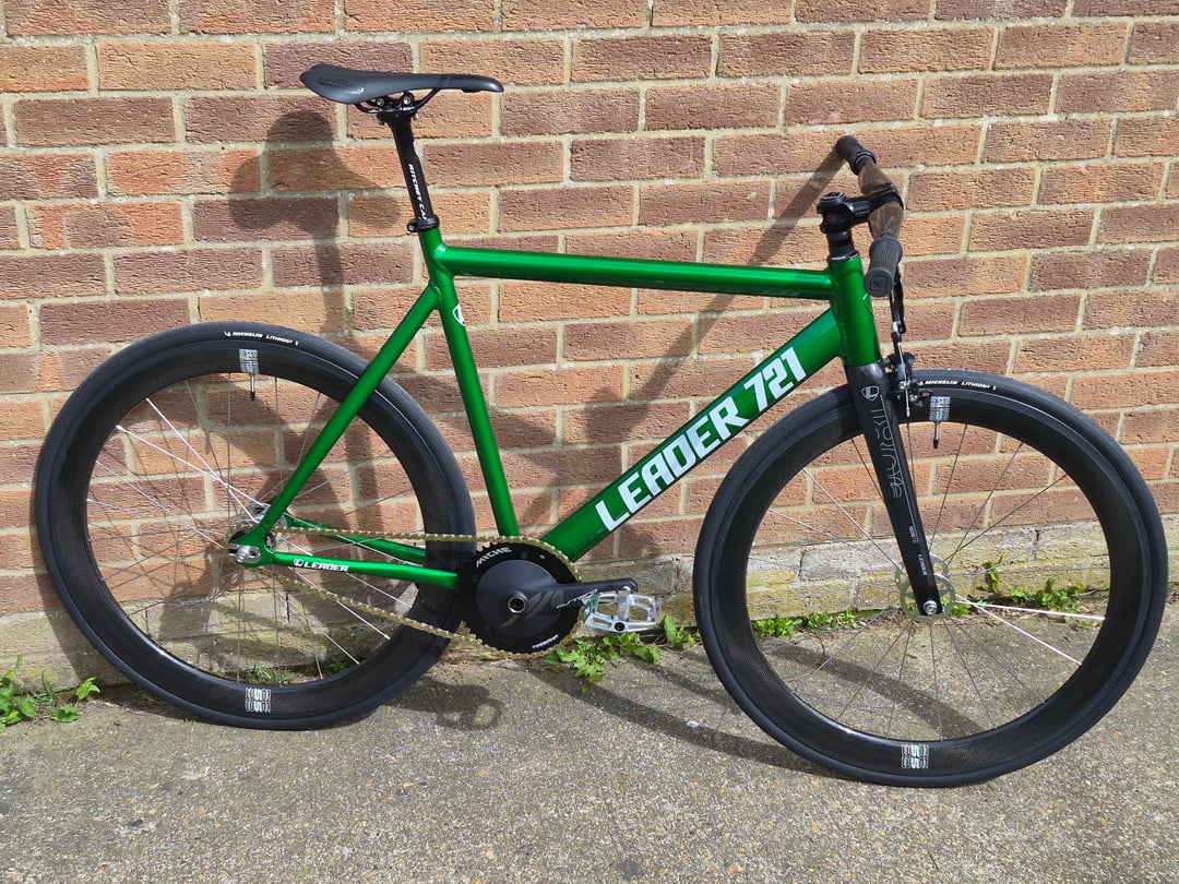 Leader 721 frame, Leader I806TR carbon Fork, kratozen carbon wheels, Stiffi bomber bars, Ritchey carbon seat post, Miche aero cranks, Thomson stem, stem cap and seat clamp, DMR V12 pedals. by bibear29 Bicycle Bike Fixed Gear Fixed Gear Bicycle Fixed Gear Bike