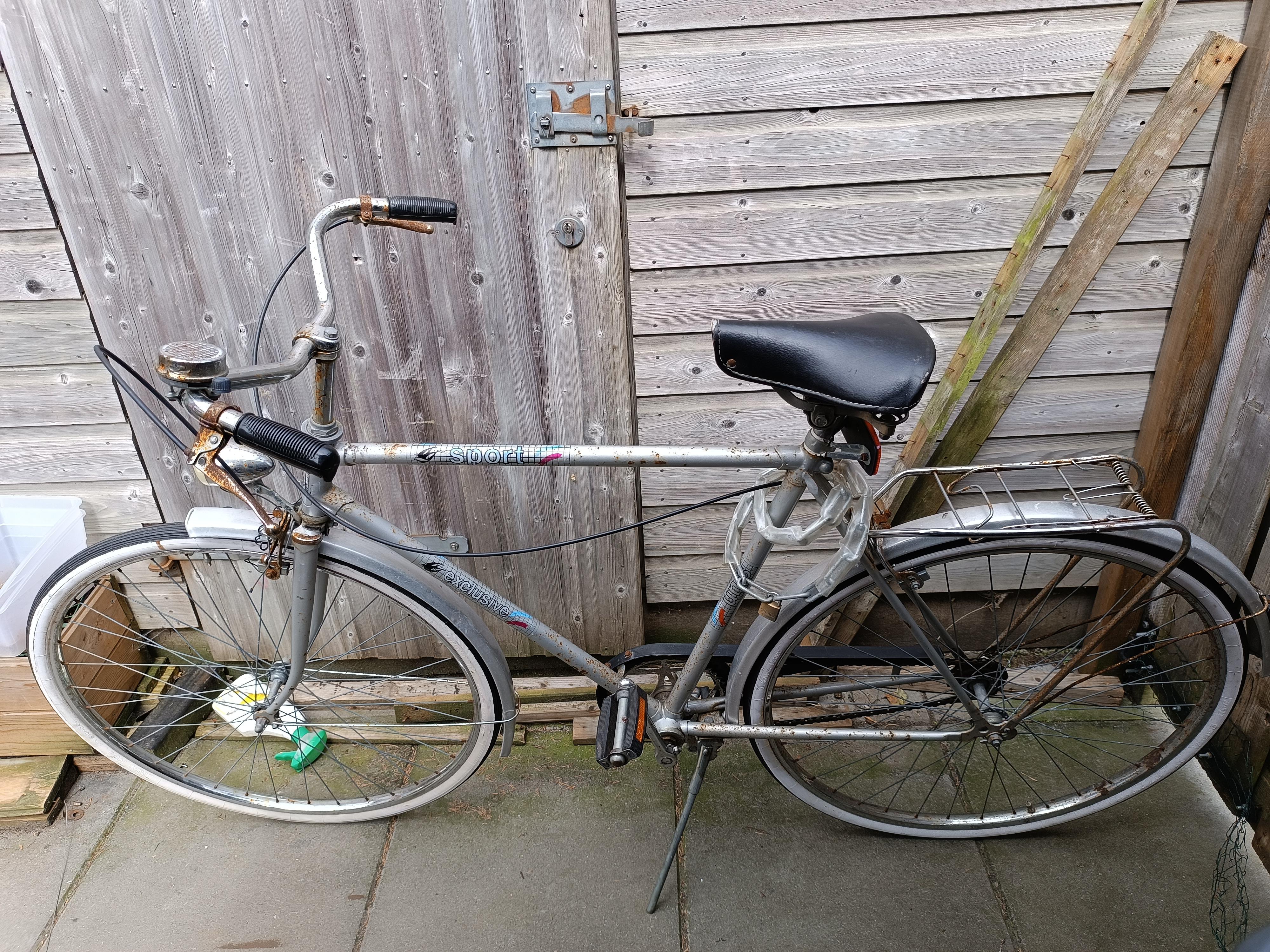 this beautiful Unis sport exclusive i found in the junkyard today. literally, aside from the tyres being deflated, it was perfectly able to be cycled on. bought it for €15, brought it home, fixed some minor issues so far, now to tackle the whitewalls and the surface rust. has yugoslavian tyres on it, and i suspect it's also a yugoslavian bike.