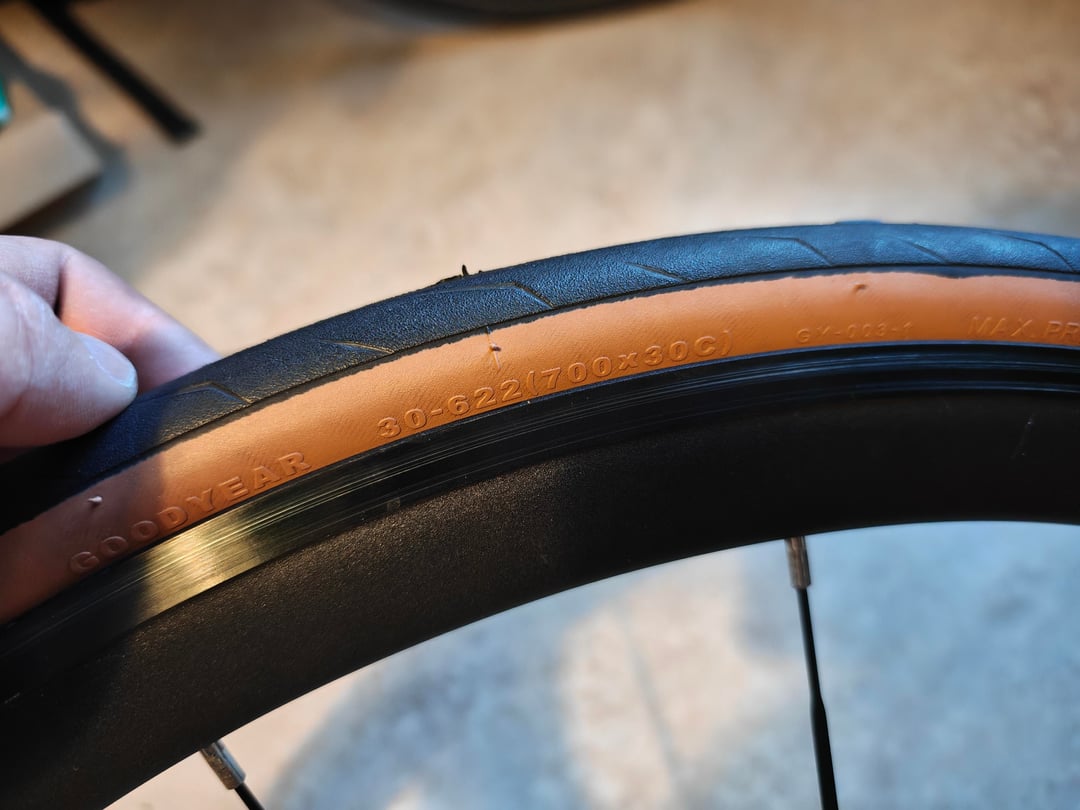 Wanted to go up in tire width from 25c to 30c. Bought a set of Good Year Eagle Sports. Noticed they looked even narrower than the old ones and behold, they measure barely 25mm.