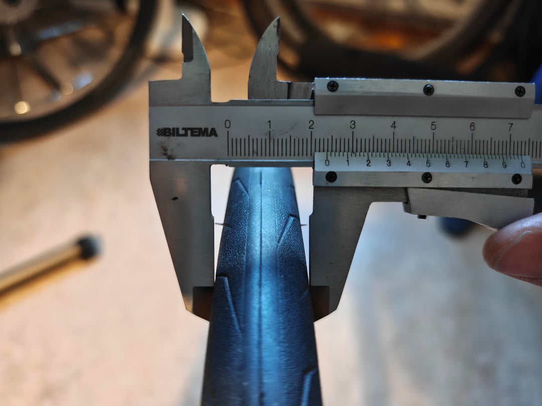I know that narrow road tires are basically a carcass with a lick or rubber over the top, but maybe their carcass choice that the tire is built on will always end up being smaller or larger than you expect, which varies by manufacturer and the carcass they are building up – and I guess with cheap tires, the big choice is to lie and save material cost where they can.