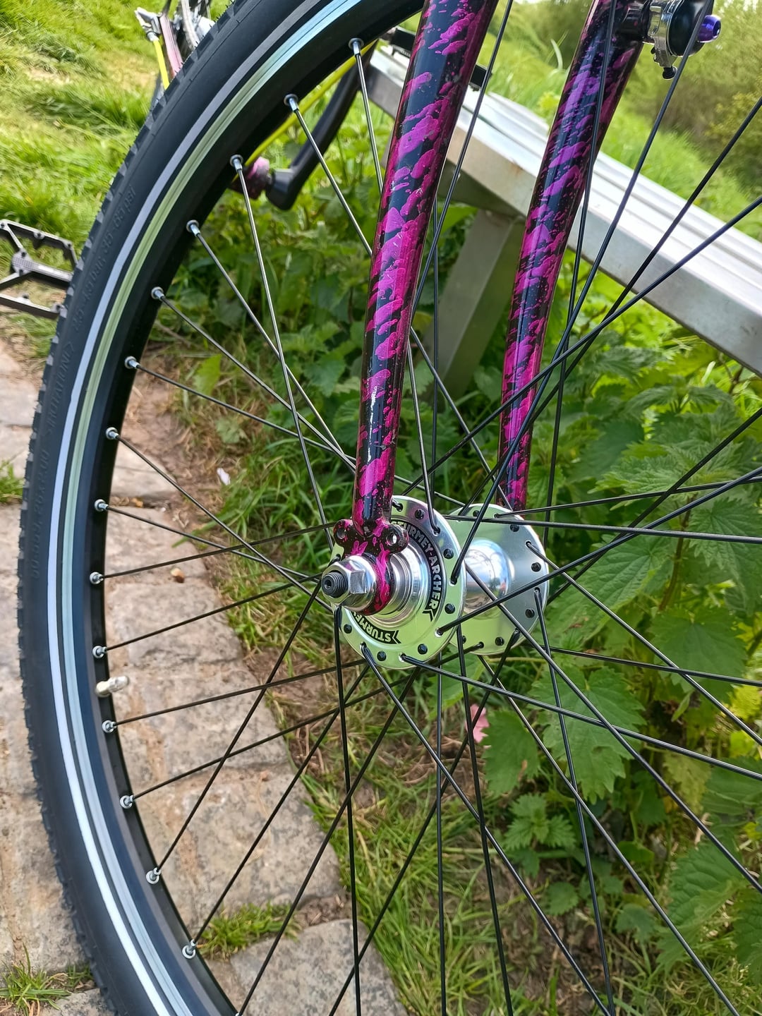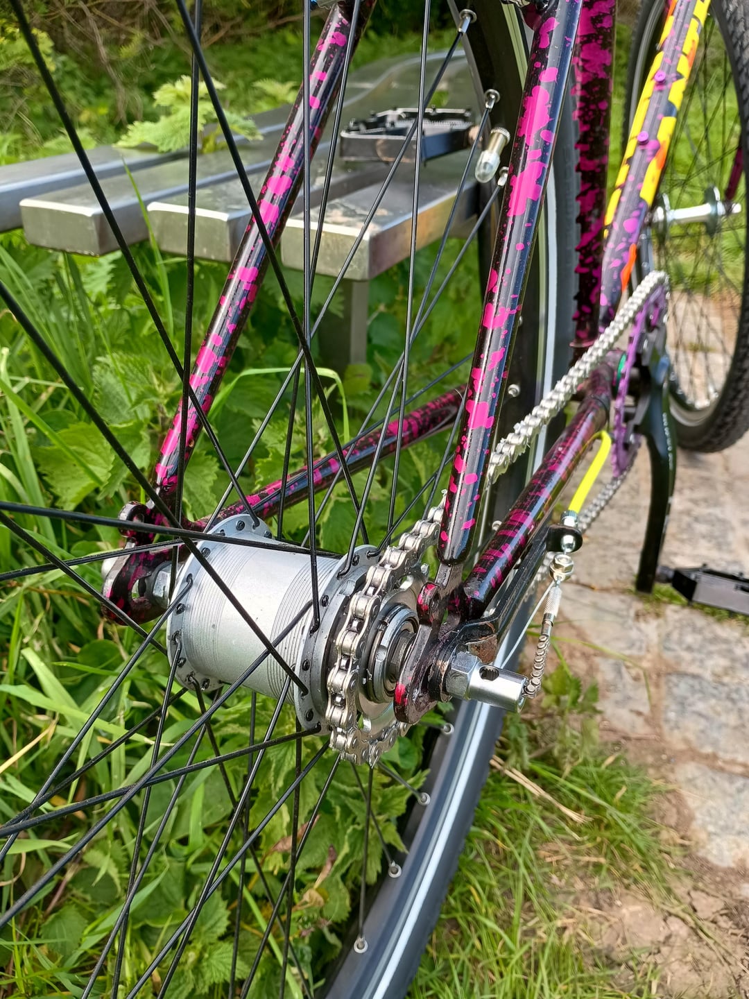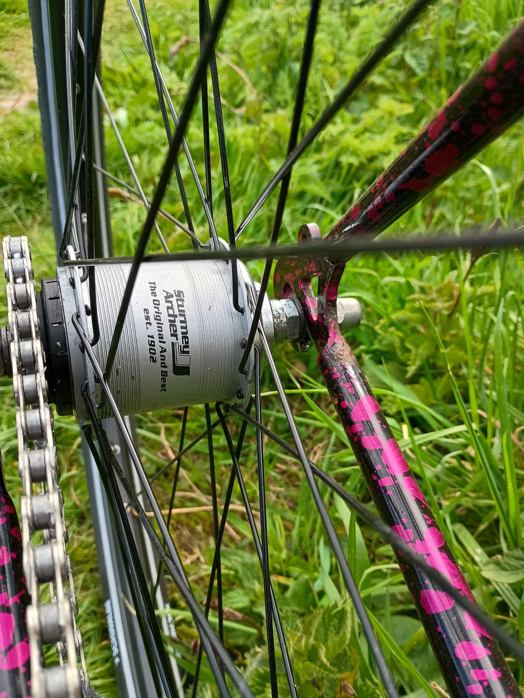 I'm a bit of a Sturmey Archer nut and had an 90's AW hub that I'd saved from a similar situation, so decided to combine the two.