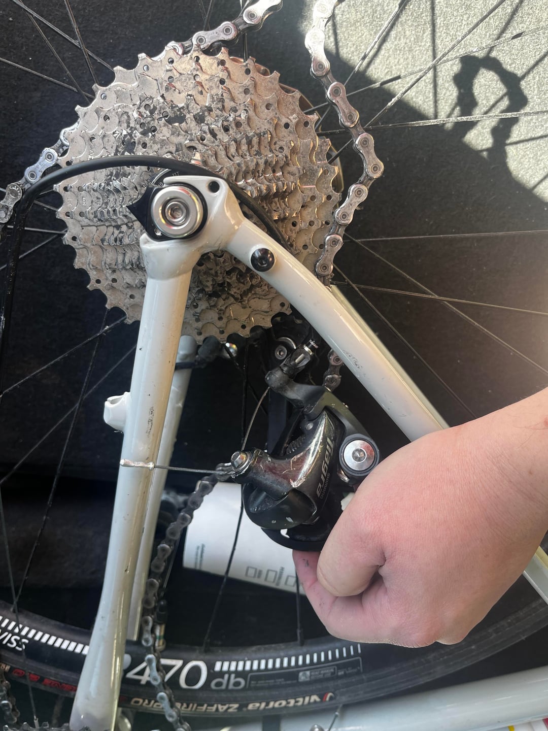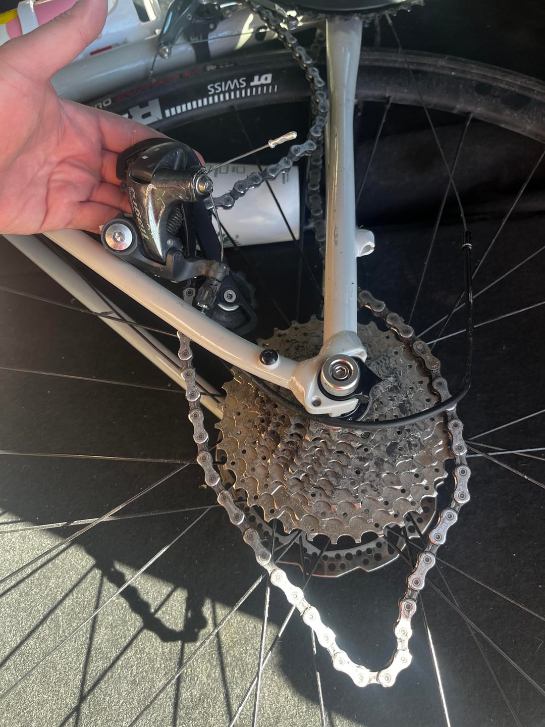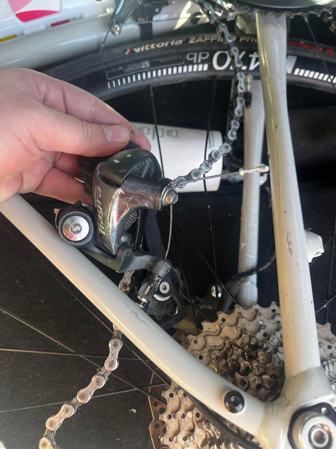 5. Need a new derailleur hanger, frame specific. Without seeing the hanger pieces together it will be tough to identify which one you need. A new rear derailleur for a race wouldn’t be unwarranted, you can check the model number on the unit imprinted on it. Get a new chain.