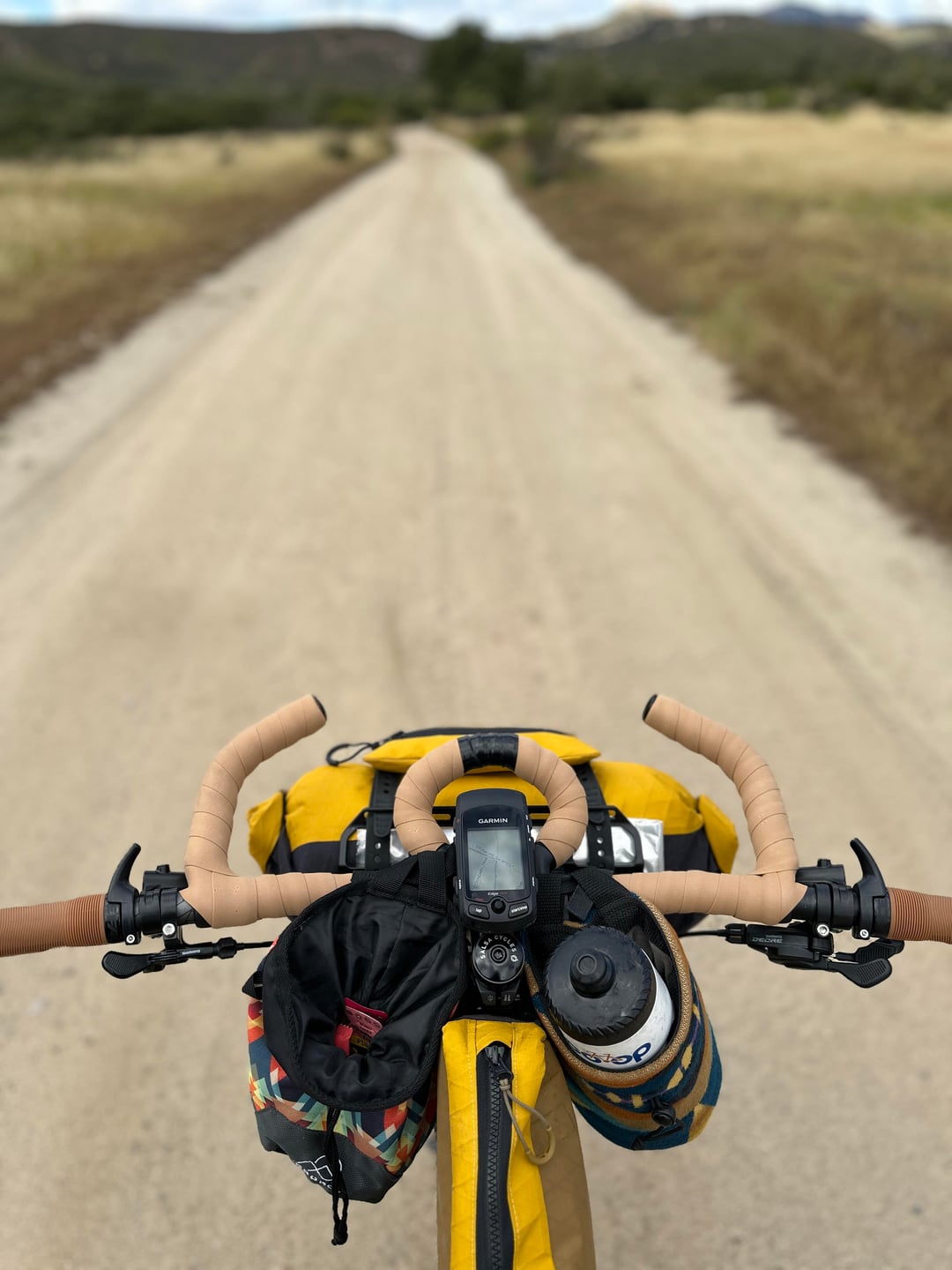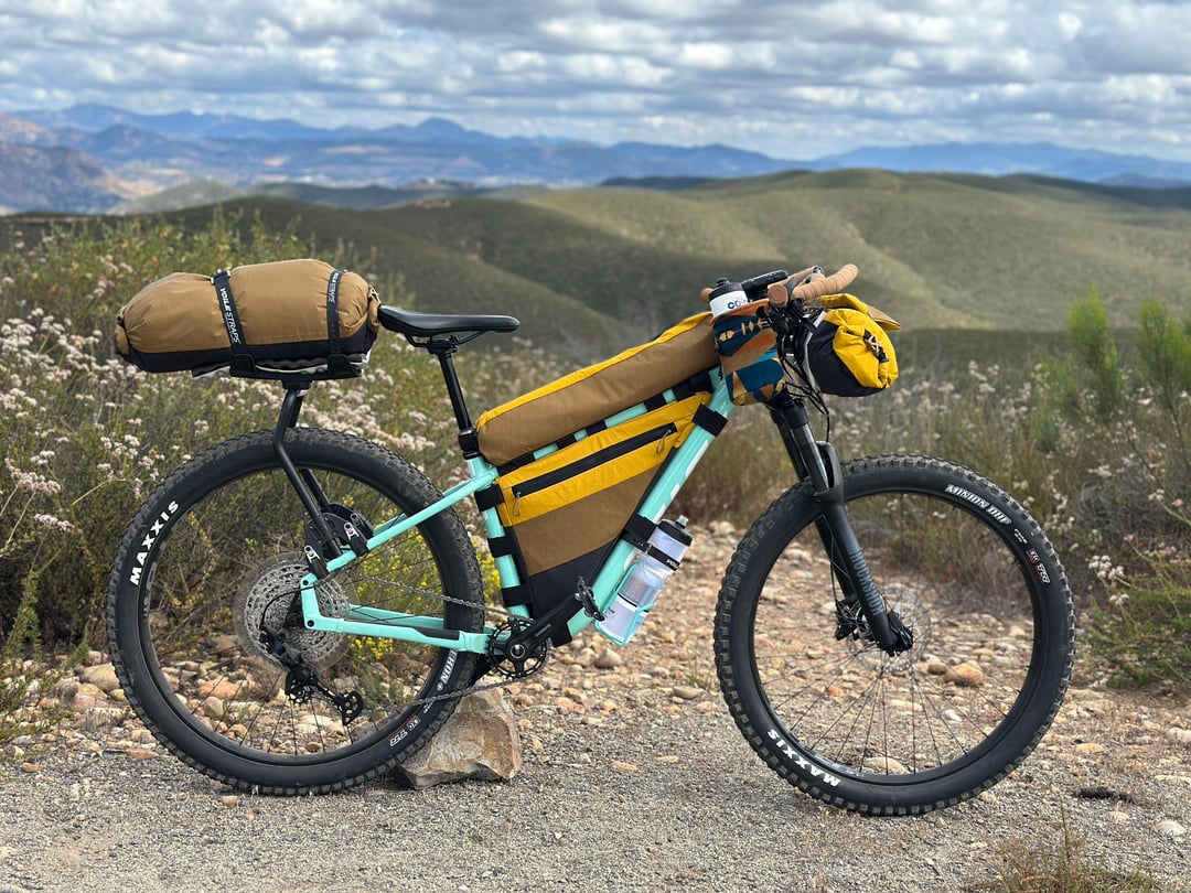 Took the rig on a day trip to test out the new bags I made before my bigger trip in 2 weeks. Went amazing and everything felt so good except for the rear bag that kept slipping back. So I added some strap loops to run the straps through on the bag so it can’t move. Im sooo happy with the handlebar bag setup it’s perfect, doesn’t move, and doesn’t even rub the bags (using the tailfin bar cage). This has me stoked for more trips this year!