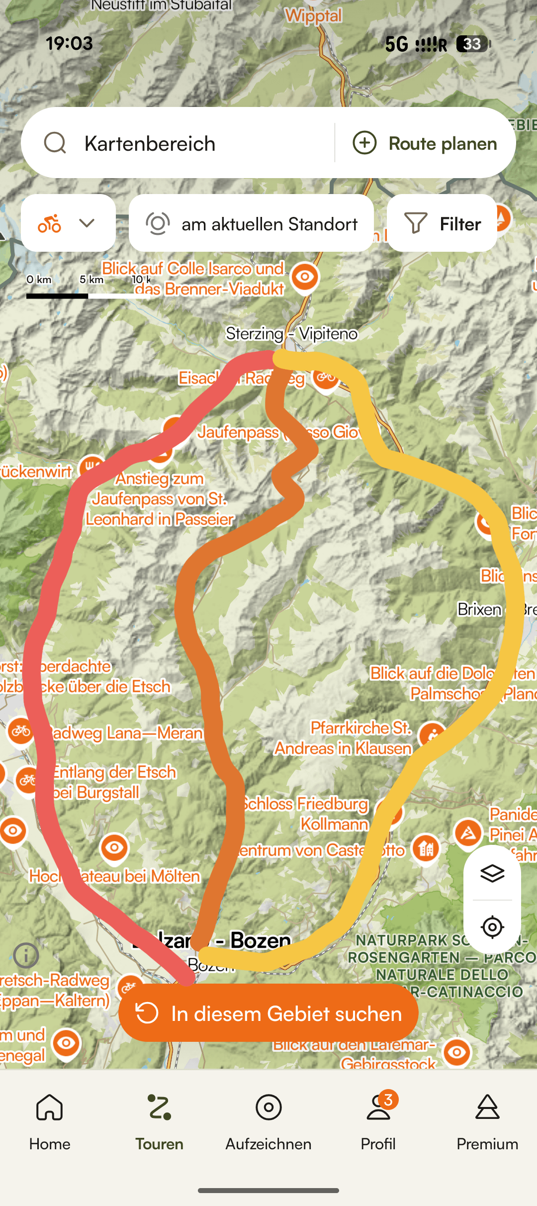 Option C: Bozen – Sarntheim – Monterosso – Penser Joch – Sterzing