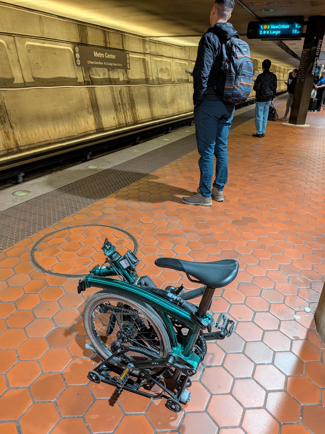 moosecanswim on April 27, 2026 9:47 pm On my way from sterling. I’ll be at metro center in 10 min with an aqua blue Brompton!