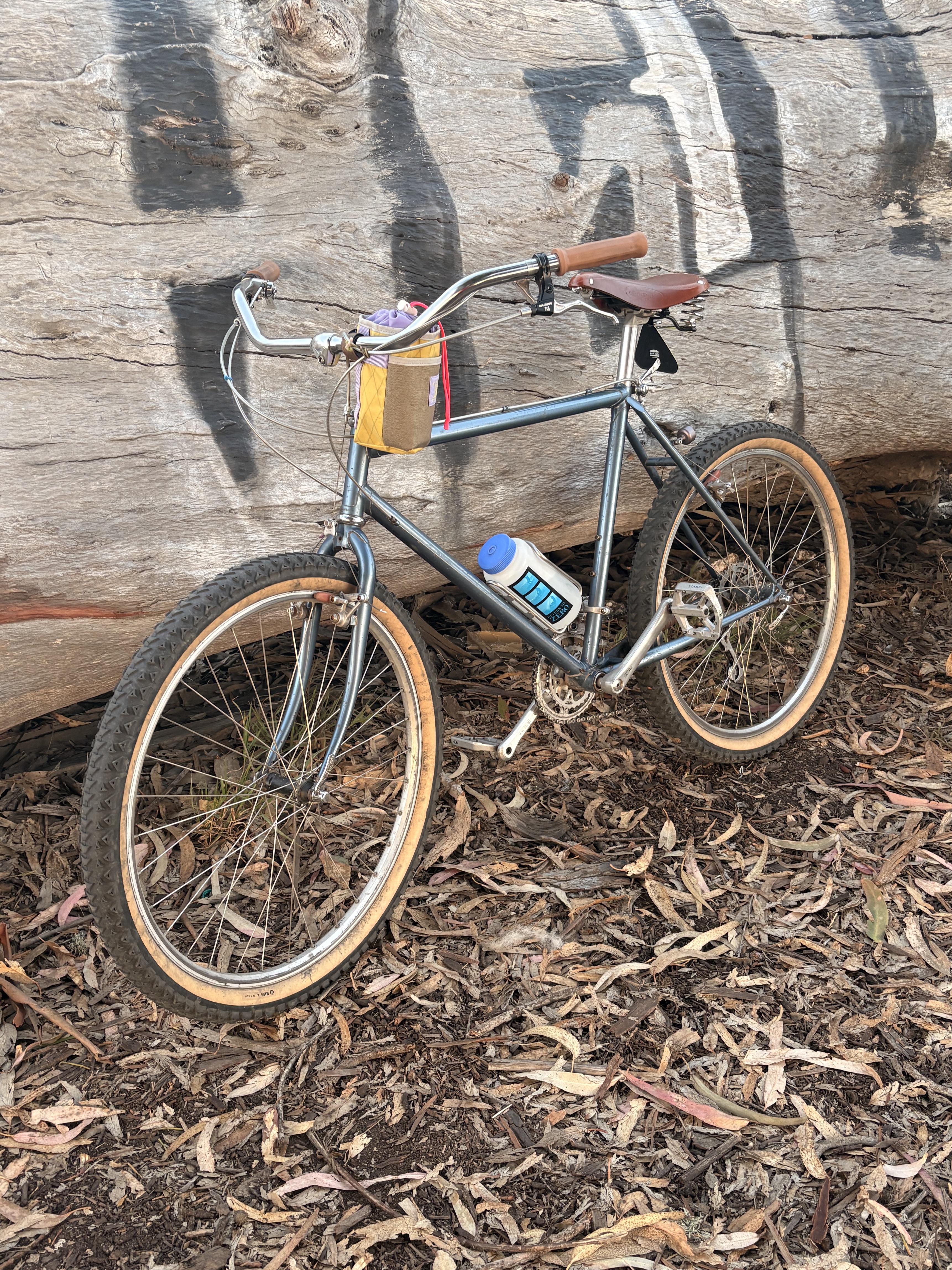 Facebook Twitter LinkedIn Pinterest Bluesky Threads Ultradynamicos Deerhead Brakes w/ Koolstop Deerhead fron derailleur Blue Lug Stem Bag Brooks B67 Suntour shifters (yes the ones you’re thinking of) Soon to add a Hite-Rite! by bennydelmar Adventure biking Adventure on a bike Bicycling Biking Cycling xbiking