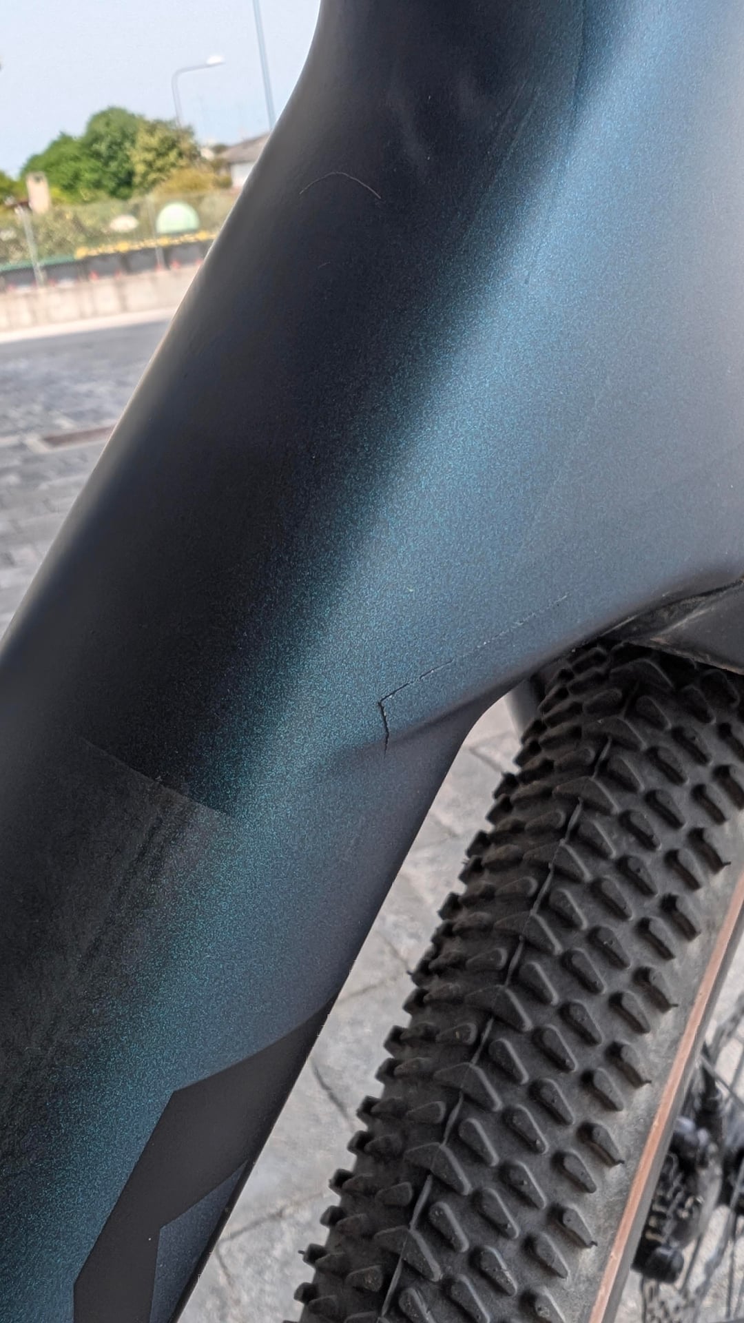 5. Sorry mate, that doesn’t look like a paint crack, but the carbon layup: that’s probably a reinforcement on that area that has delaminated. Contact Orbea and get it replaced.