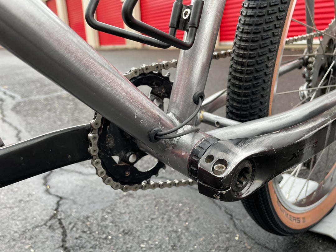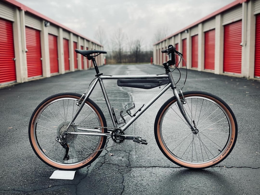 Ive been a mechanic for 20 years and always have parts/ frames kicking around so im constantly putting together weird bikes. This is one of my favorites. Some junky old frame, internally routed XTR di2, bolted frame bag, hand brushed finish, etc.