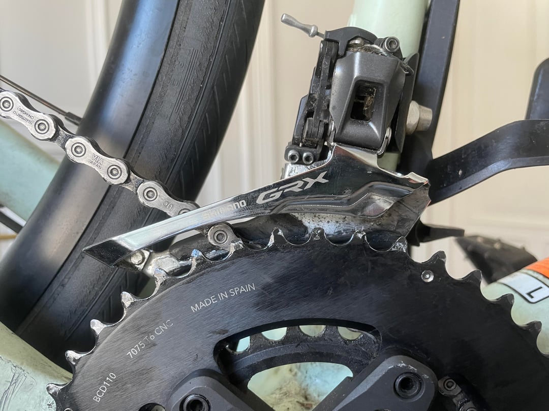 Got a shimano grx front derailleur and despite setting it up as correct as i could with the L + H screws i can’t seem to get all gears working without touching in the front.